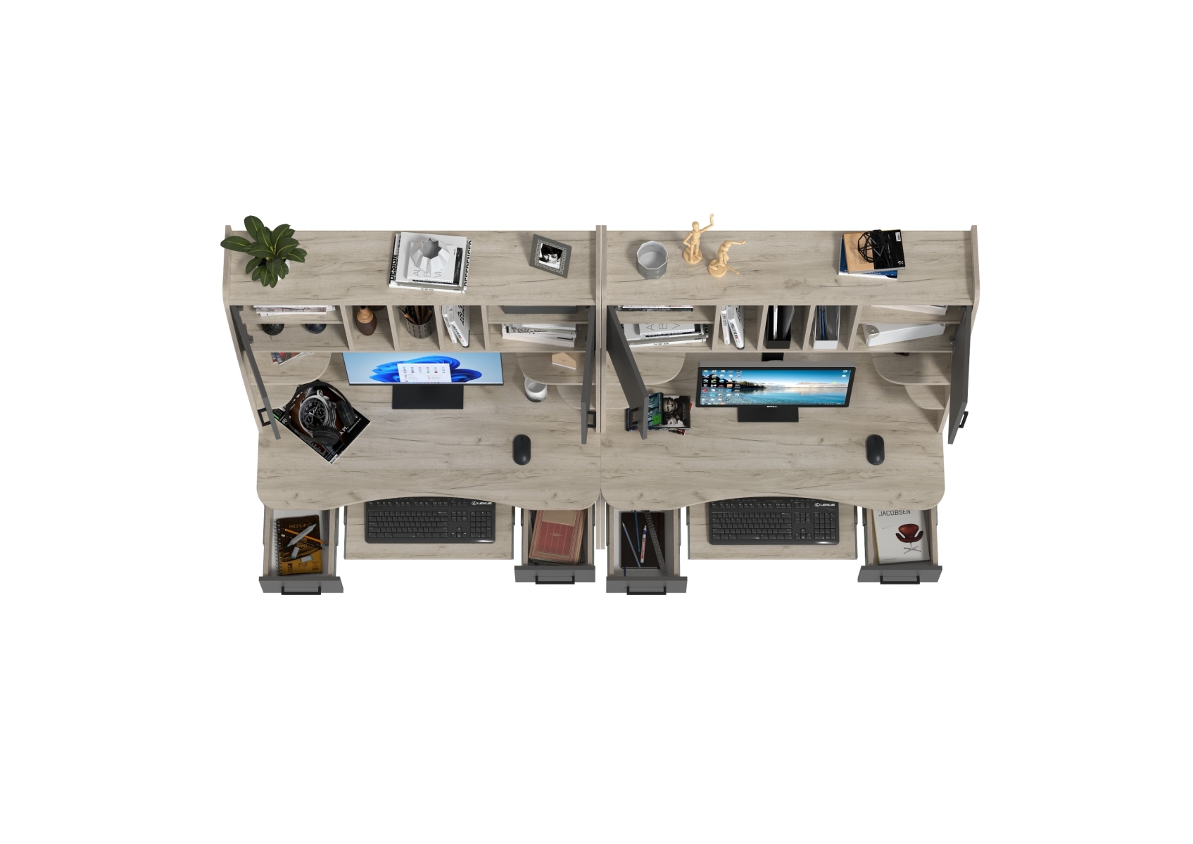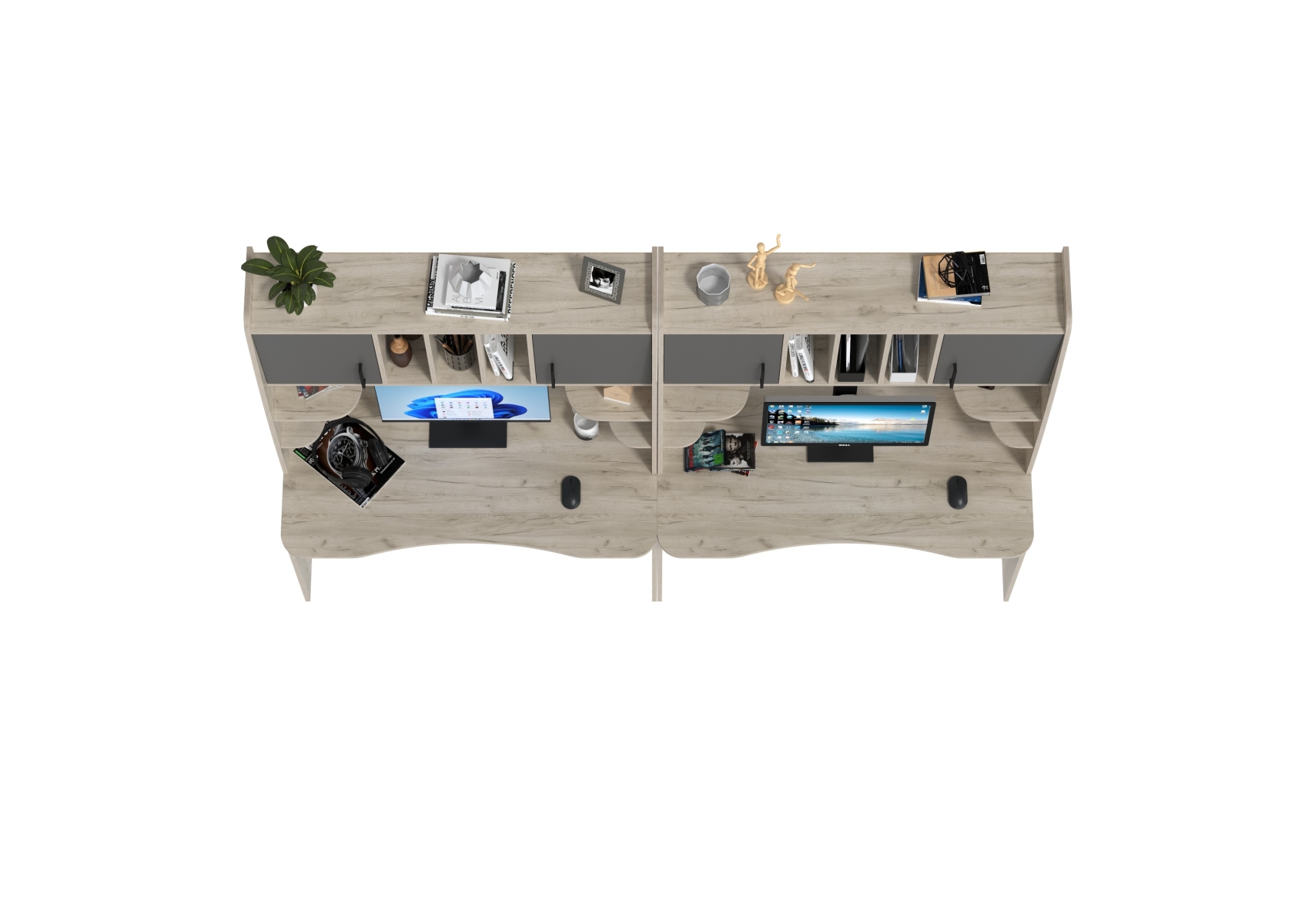 Два стола рабочих 6-0604дкс/граф Бета, цвет дуб крафт серый/графит, ШхГхВ 240х60,5х183,5 см.