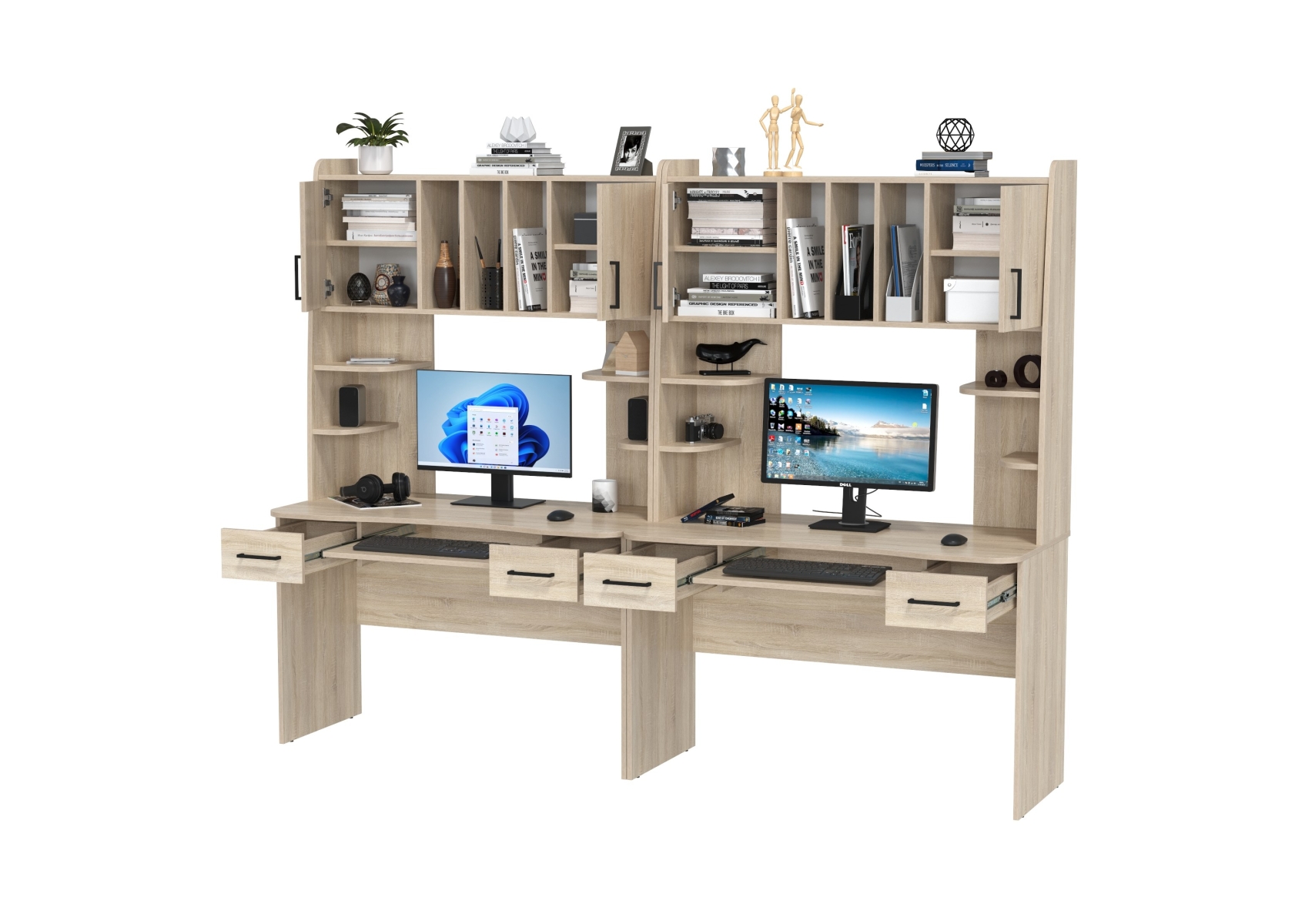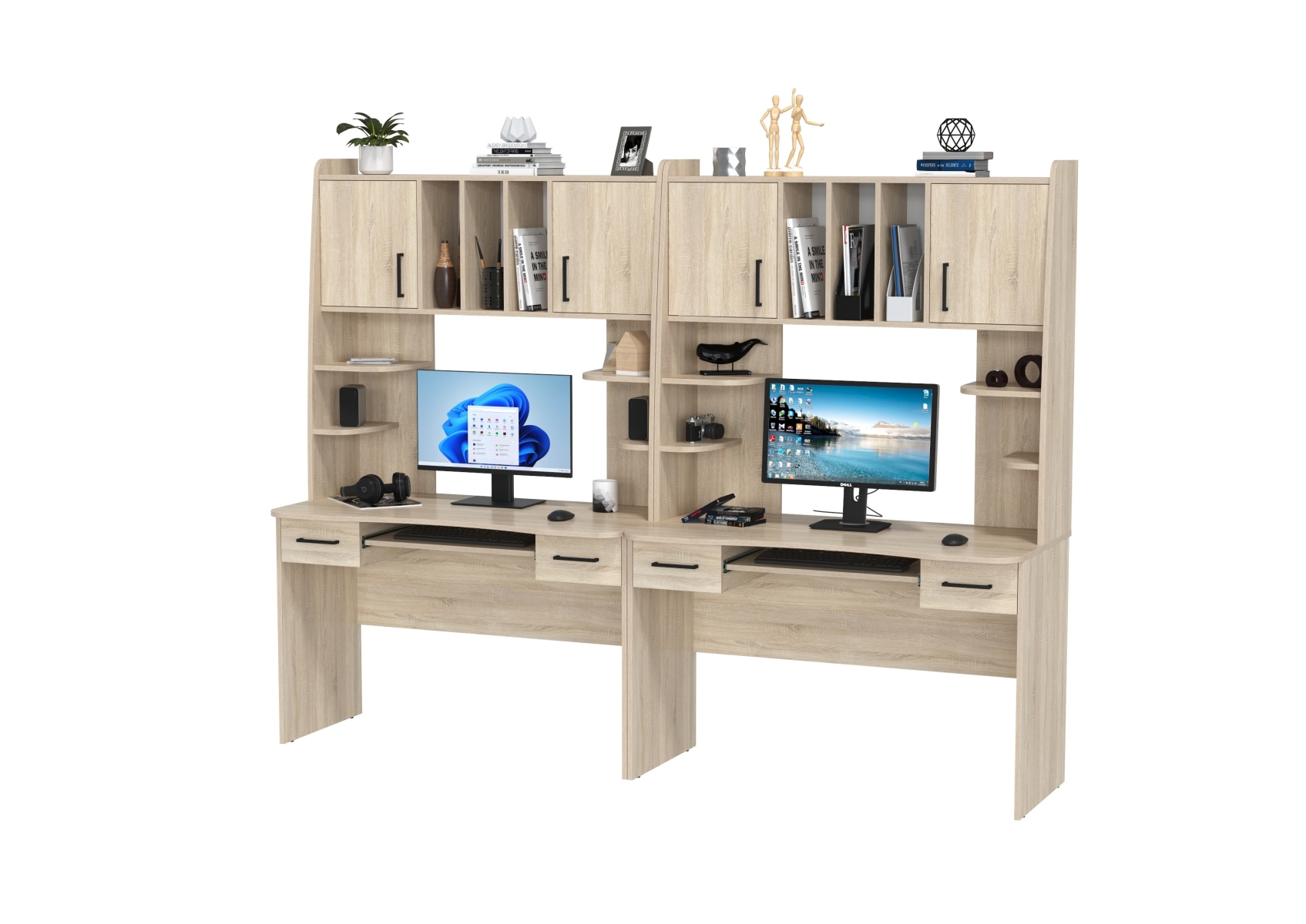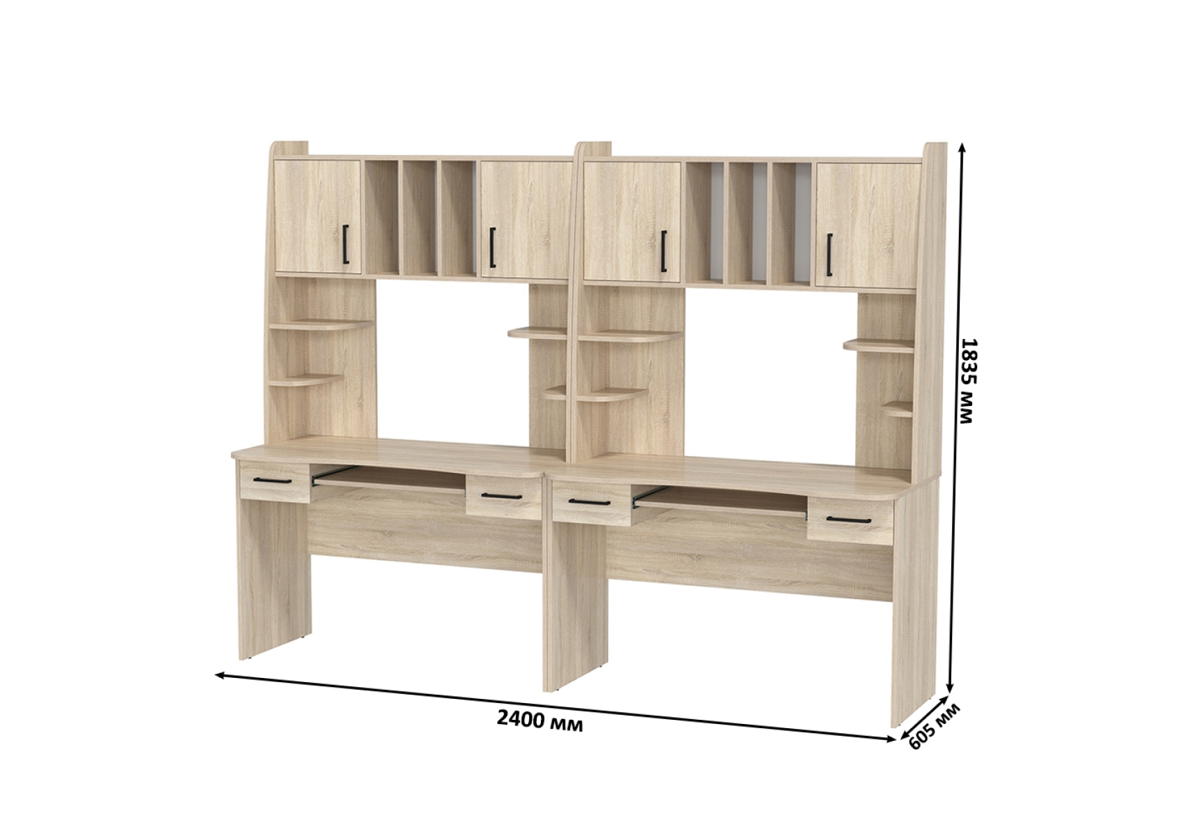 Компьютерные столы для двоих человек Бета. Цвет - дуб сонома. Габариты - 240х60,5х183,5 см. Каждый стол - стильный и функциональный помощник, который эффективно организует рабочее пространство. Столешницы с мягко закруглёнными краями.