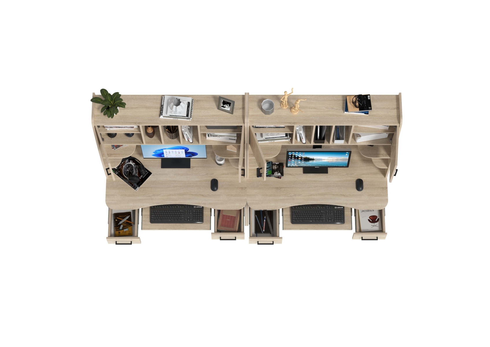 Два стола рабочих 6-0604дубсон Бета, цвет дуб сонома, ШхГхВ 240х60,5х183,5 см.