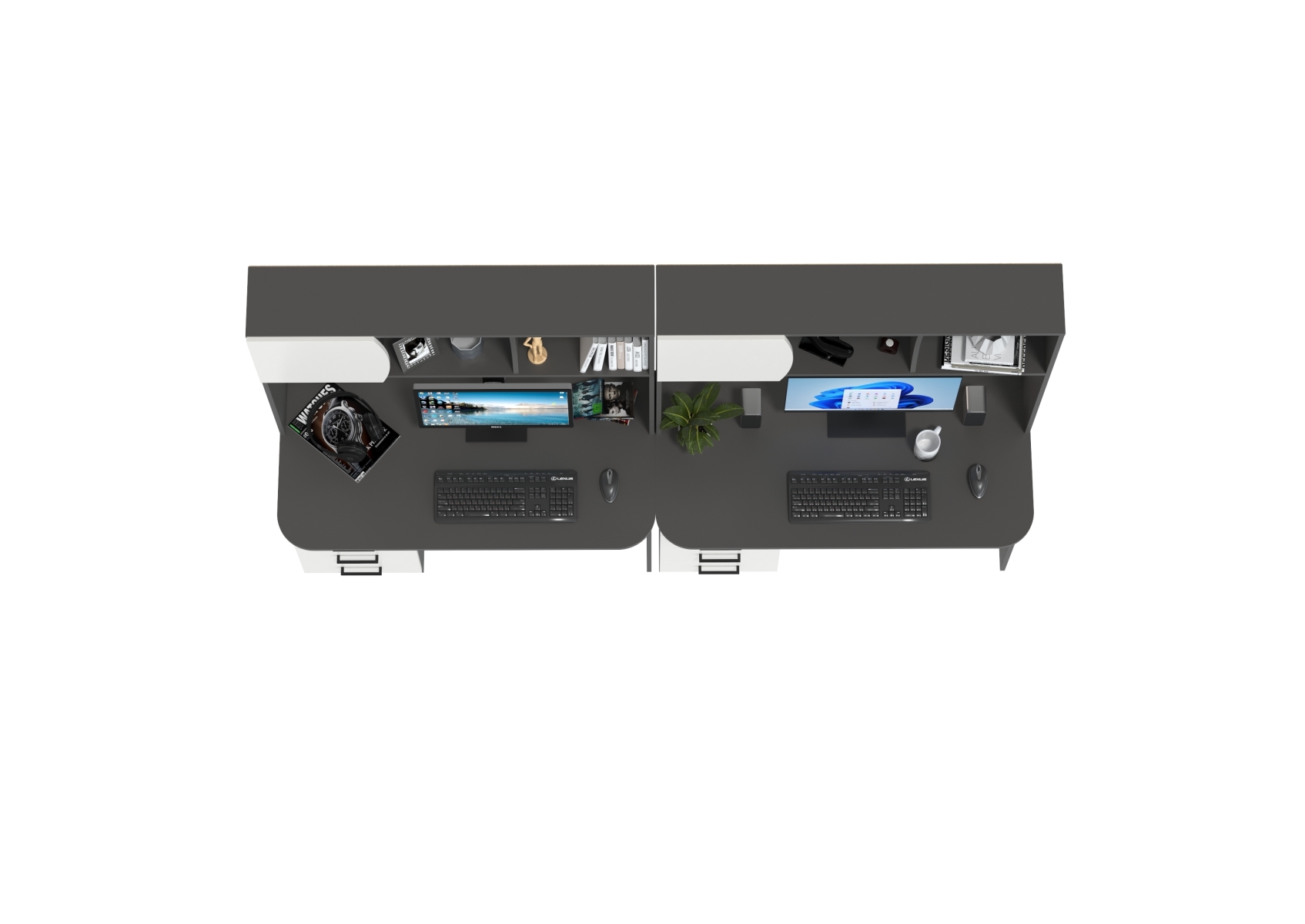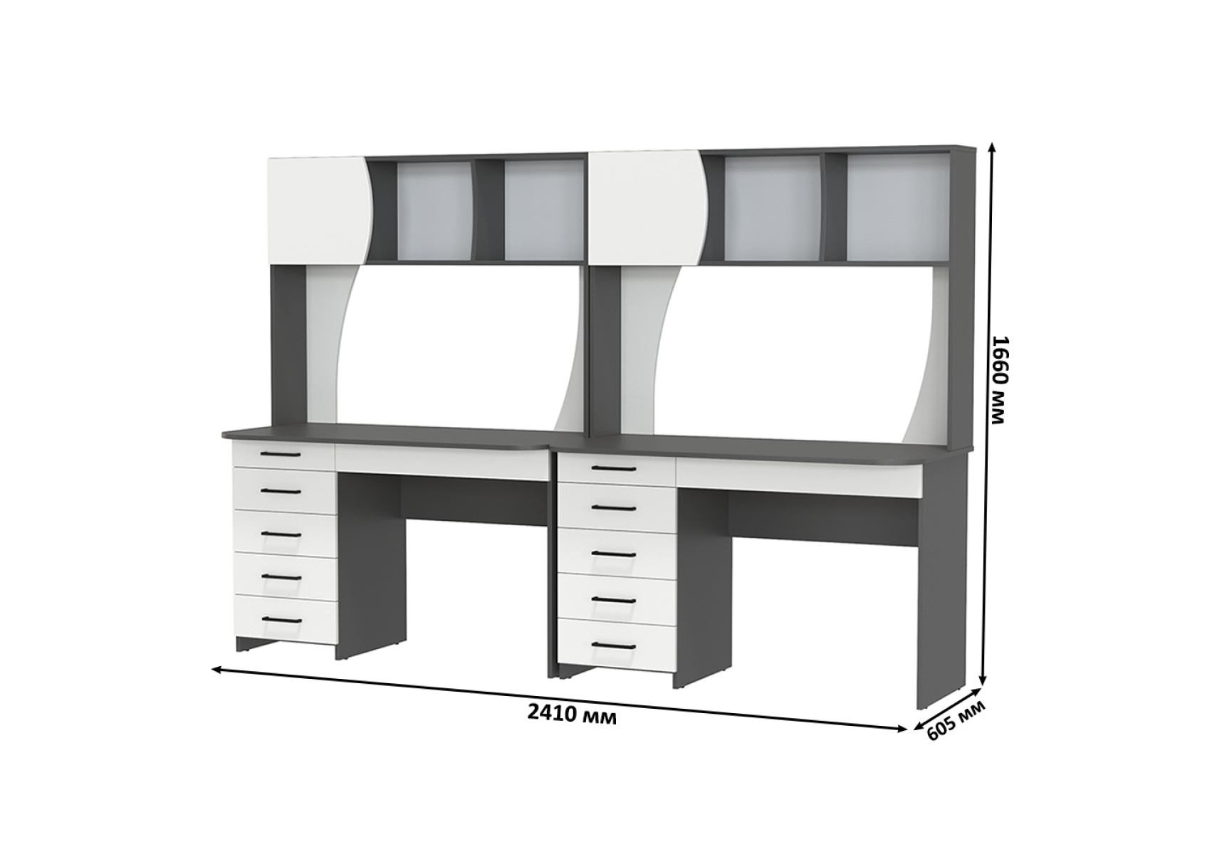 Два стола рабочих 6-0606граф/бел Сигма, цвет графит/белый, ШхГхВ 241х60,5х166 см., НЕ универсальная сборка