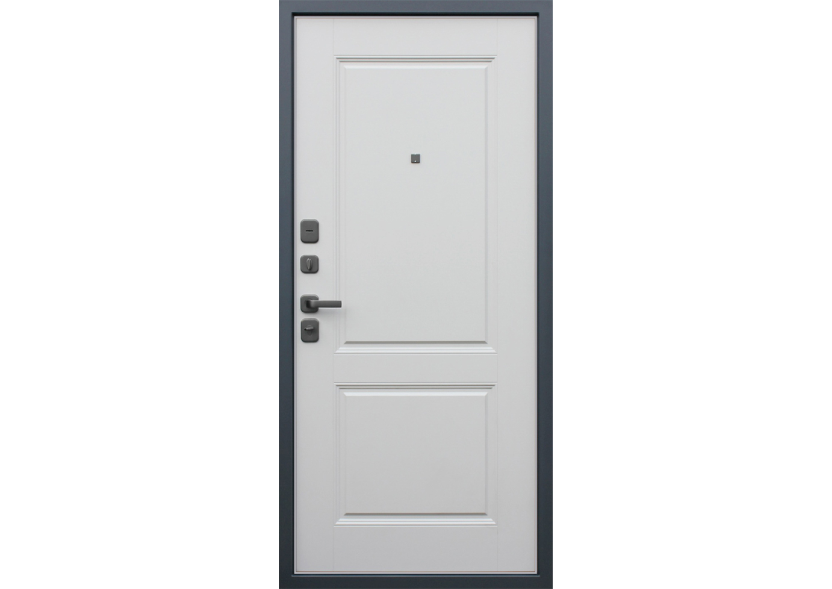 На квадратной розетке Ручка, глазок цвет «Графит».Евроцилиндр К-В перфокарта, броненакладка врезная , на сувальдном замке накладки со шторками автомат КЛС, штырь антисъемный 3 шт.