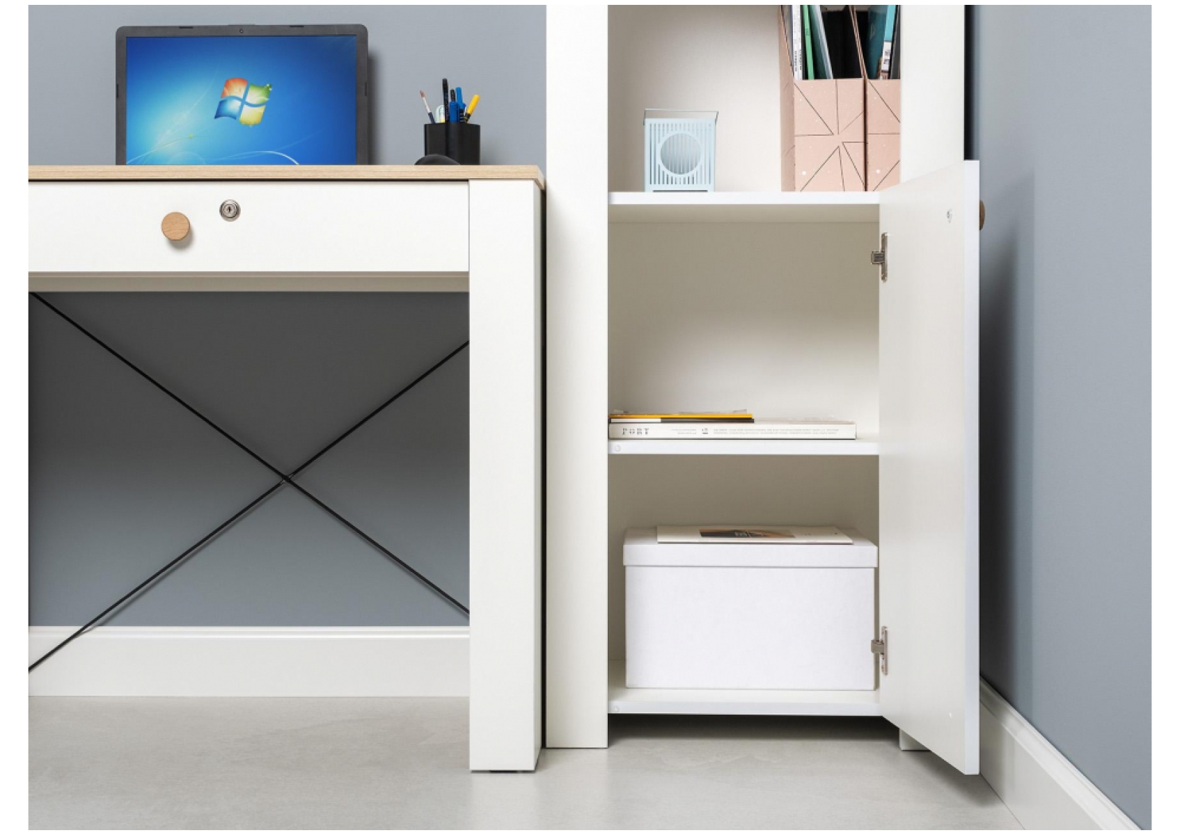 Стеллаж Джастин 16.306 белый PE шагрень / дуб белый exclusive OW D4430
