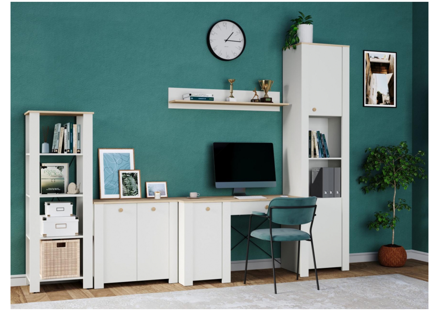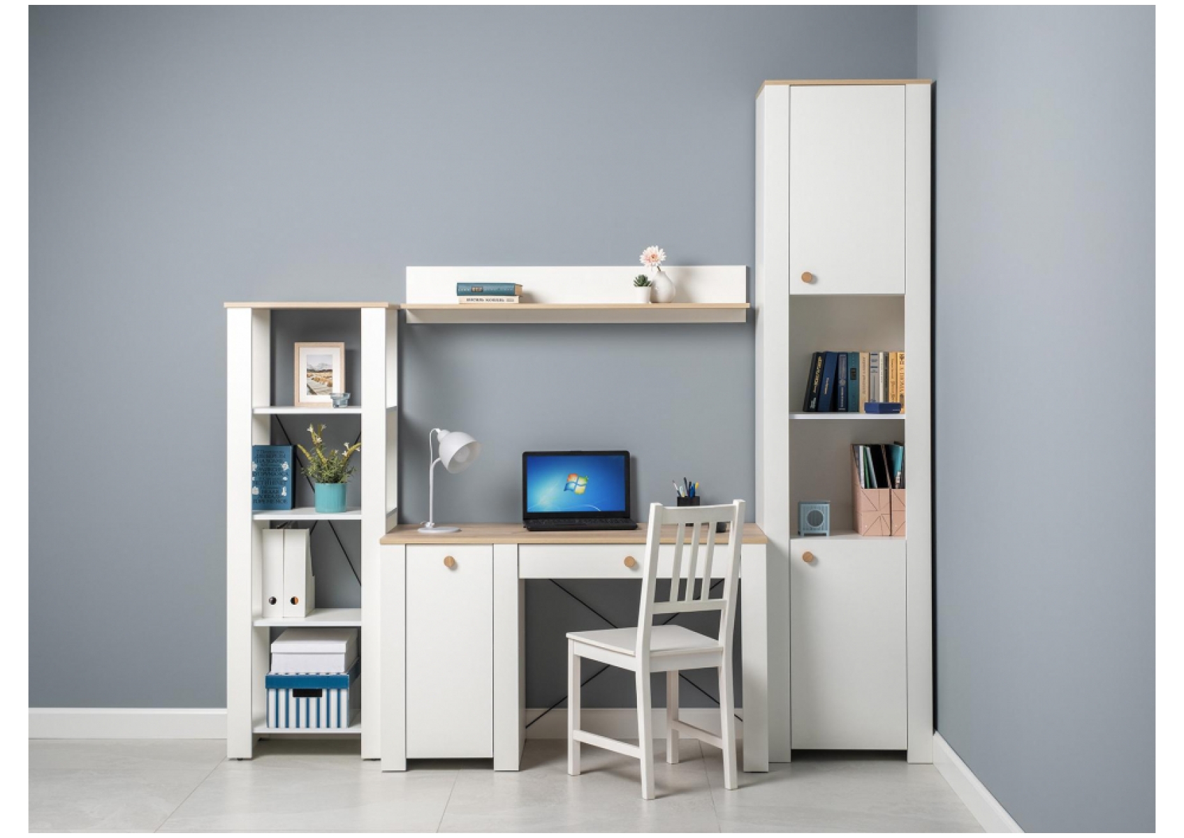 Полка Джастин 16.485 белый PE шагрень / дуб белый exclusive OW D4430