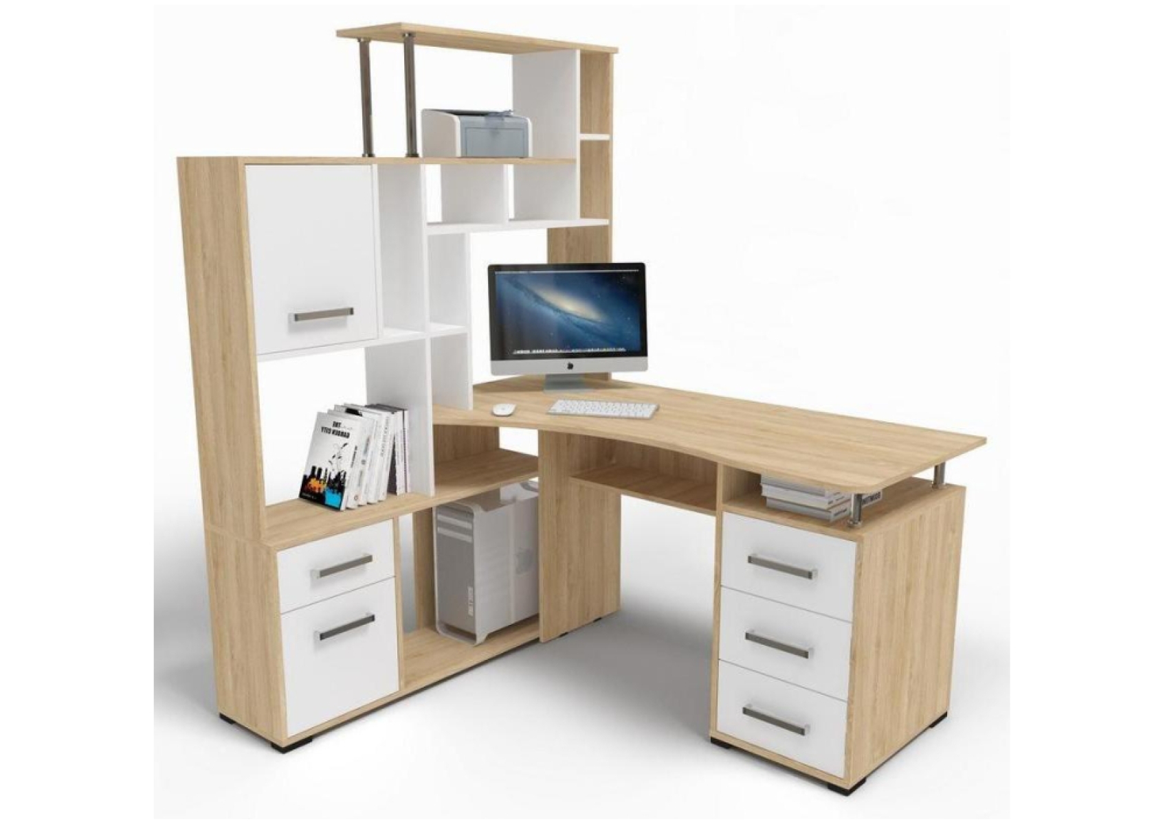 Стол компьютерный Джаз-15 левый дуб сонома / белый