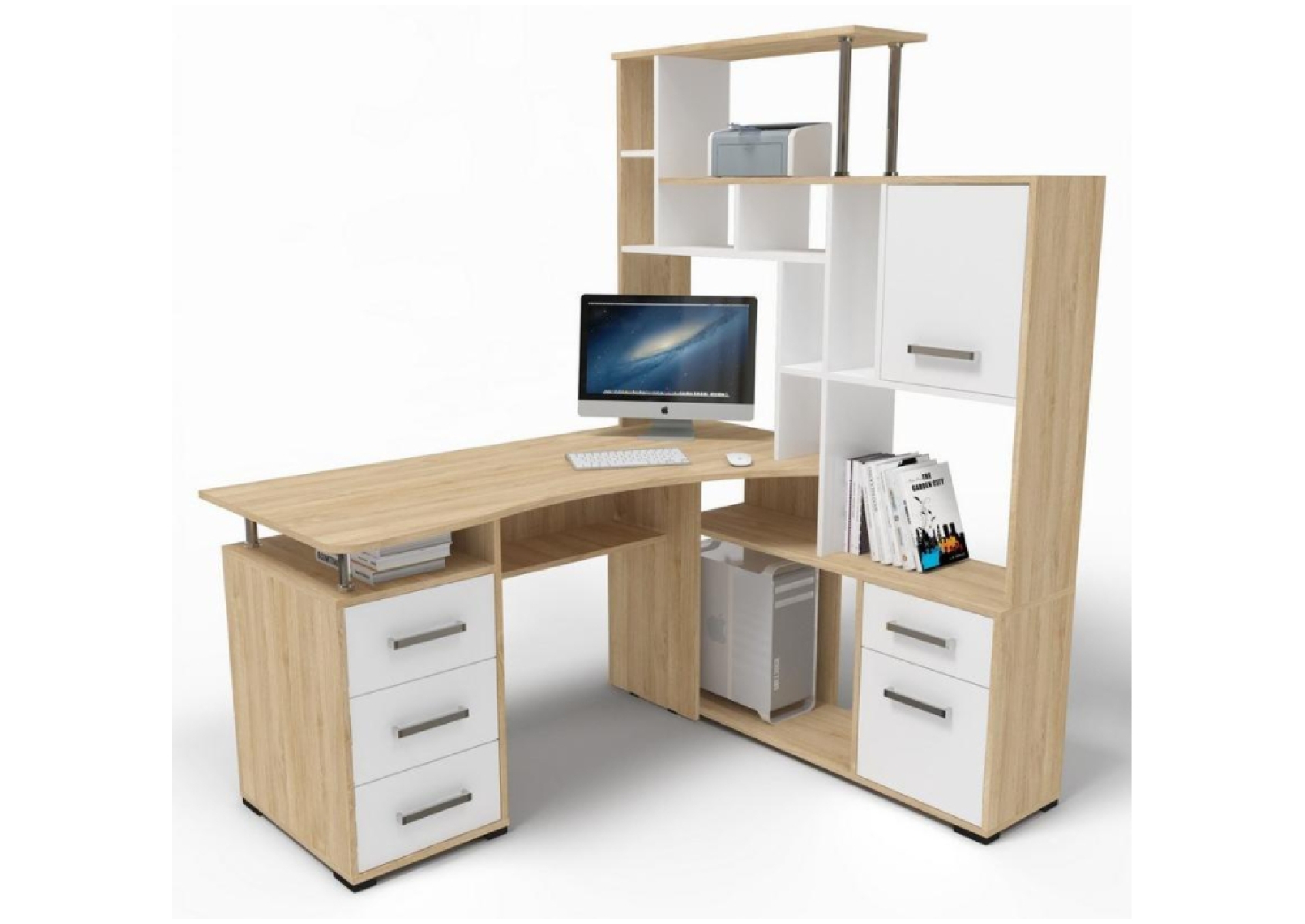 Стол компьютерный Джаз-15 правый дуб сонома / белый