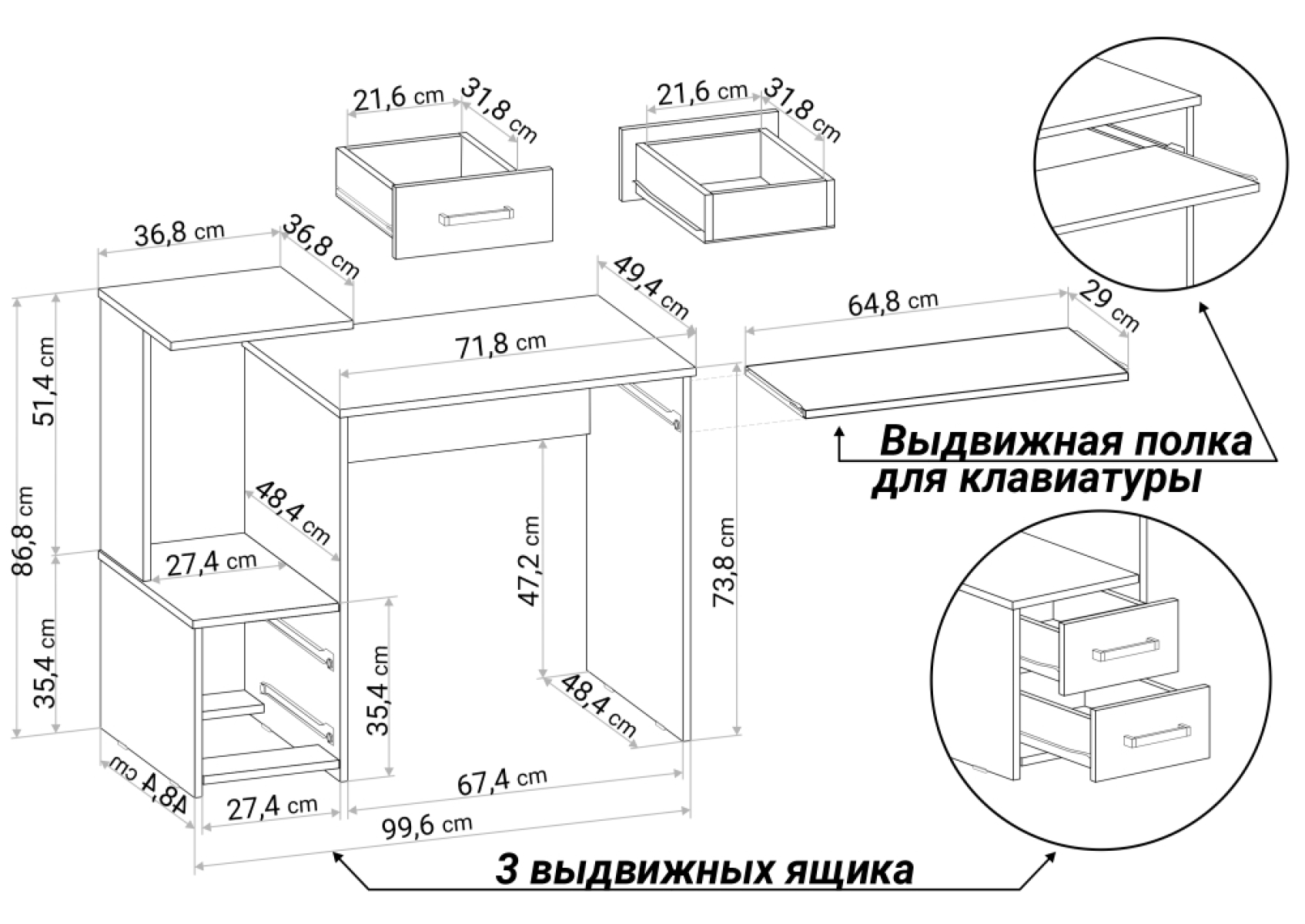 Стол компьютерный Джаз-24 - это отличный выбор для тех, кто ищет практичное и функциональное рабочее место. Выдвижная полка для клавиатуры помогает сохранить место на столе, а ниша для принтера и системного блока позволяет удобно разместить все необходимое оборудование. Два выдвижных ящика обеспечивают дополнительное место для хранения. Выполненный из ЛДСП, стол Джаз-24 прочен и долговечен.