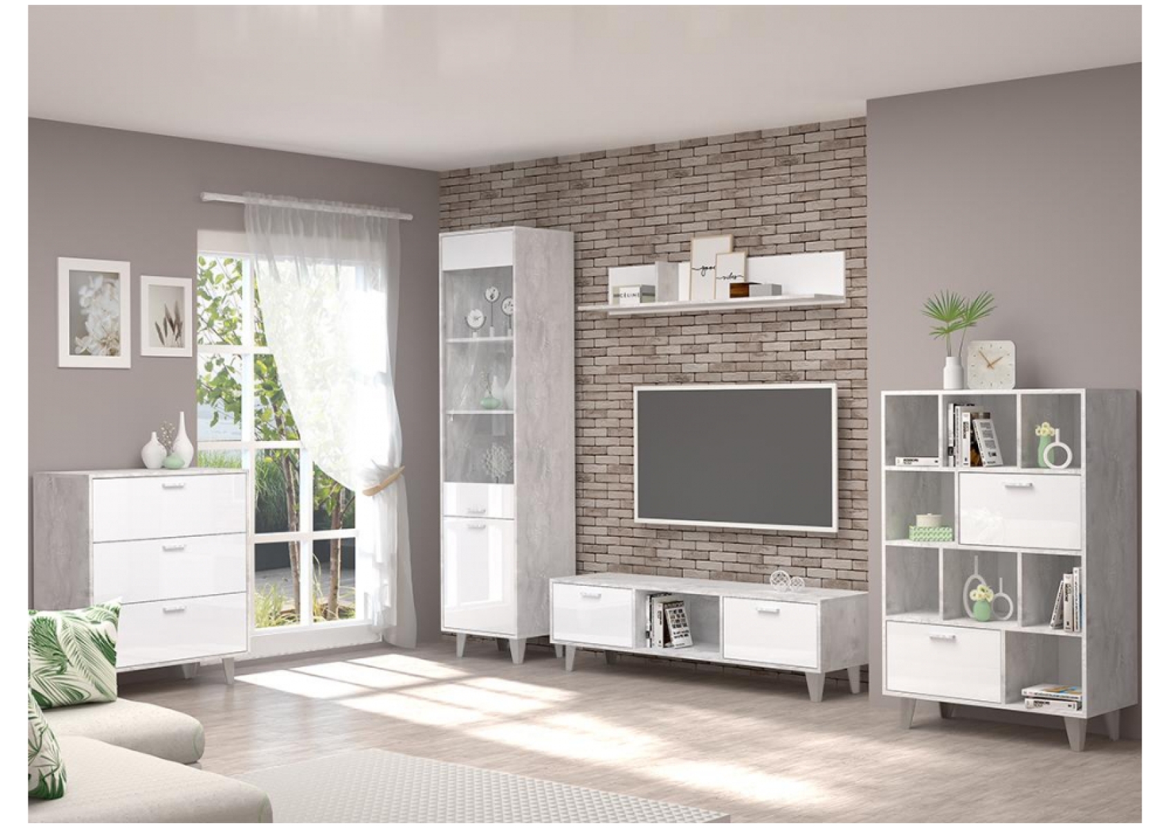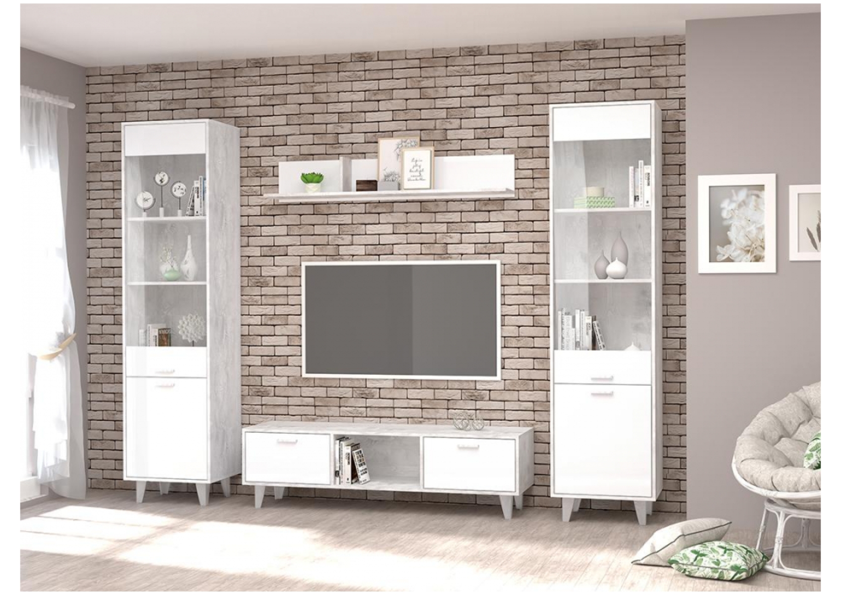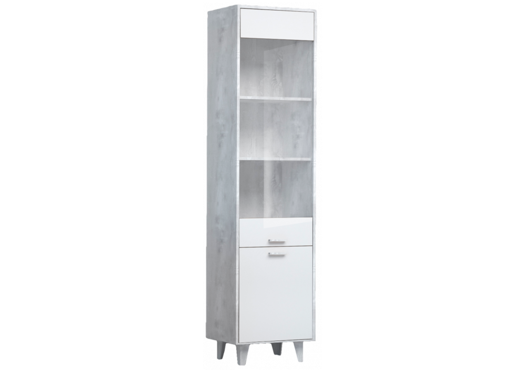 Витрина Эго ПС-1 на ножках бетон светлый / белый глянец