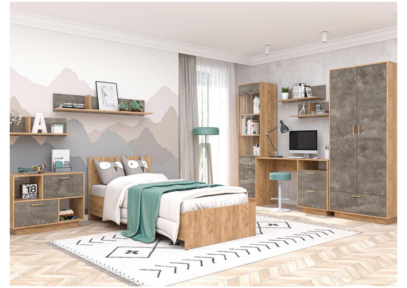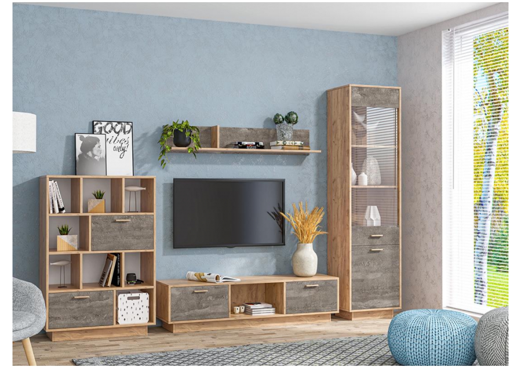 Шкаф Эго ПС-1 на подиуме дуб крафт золотой / камень темный