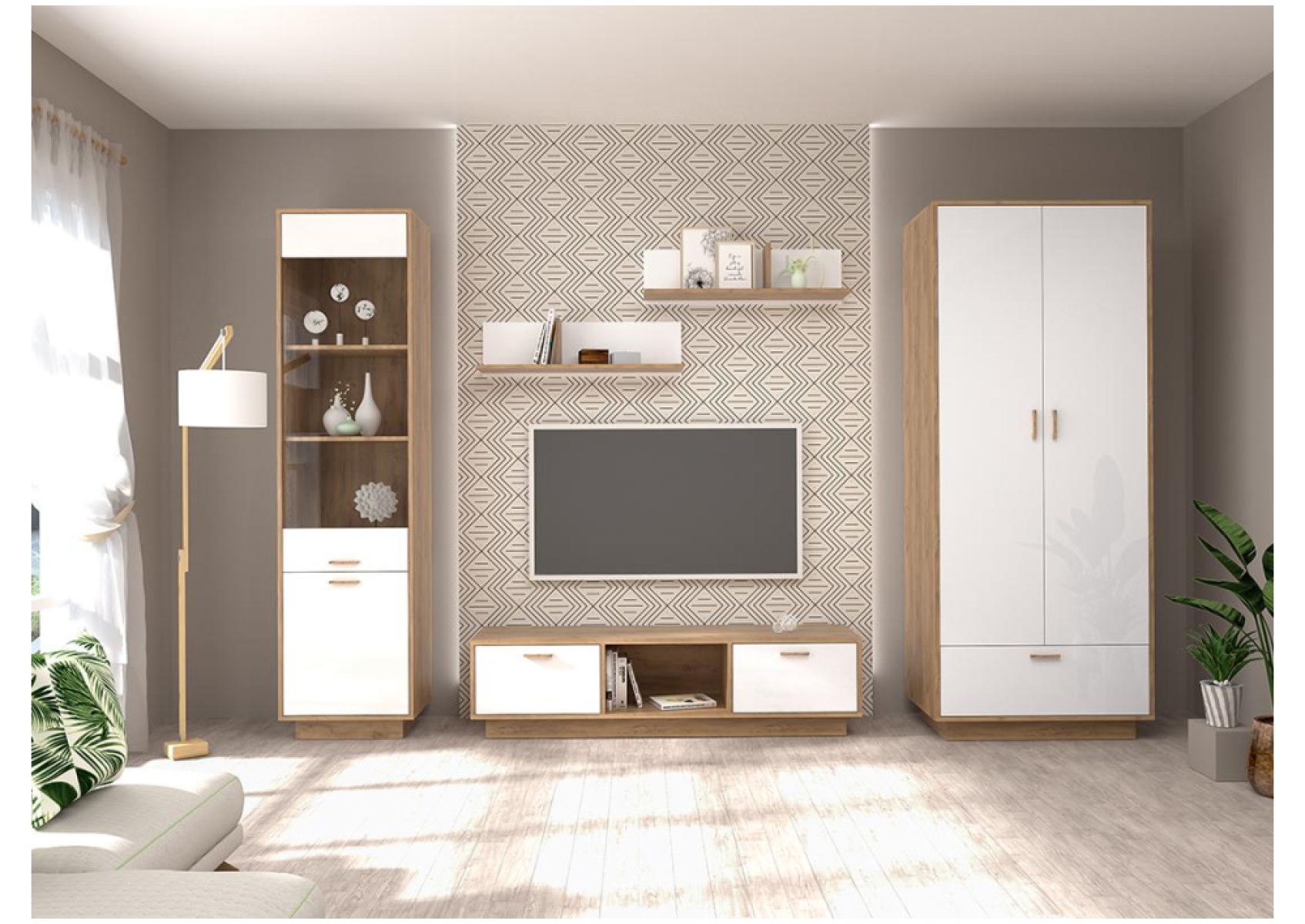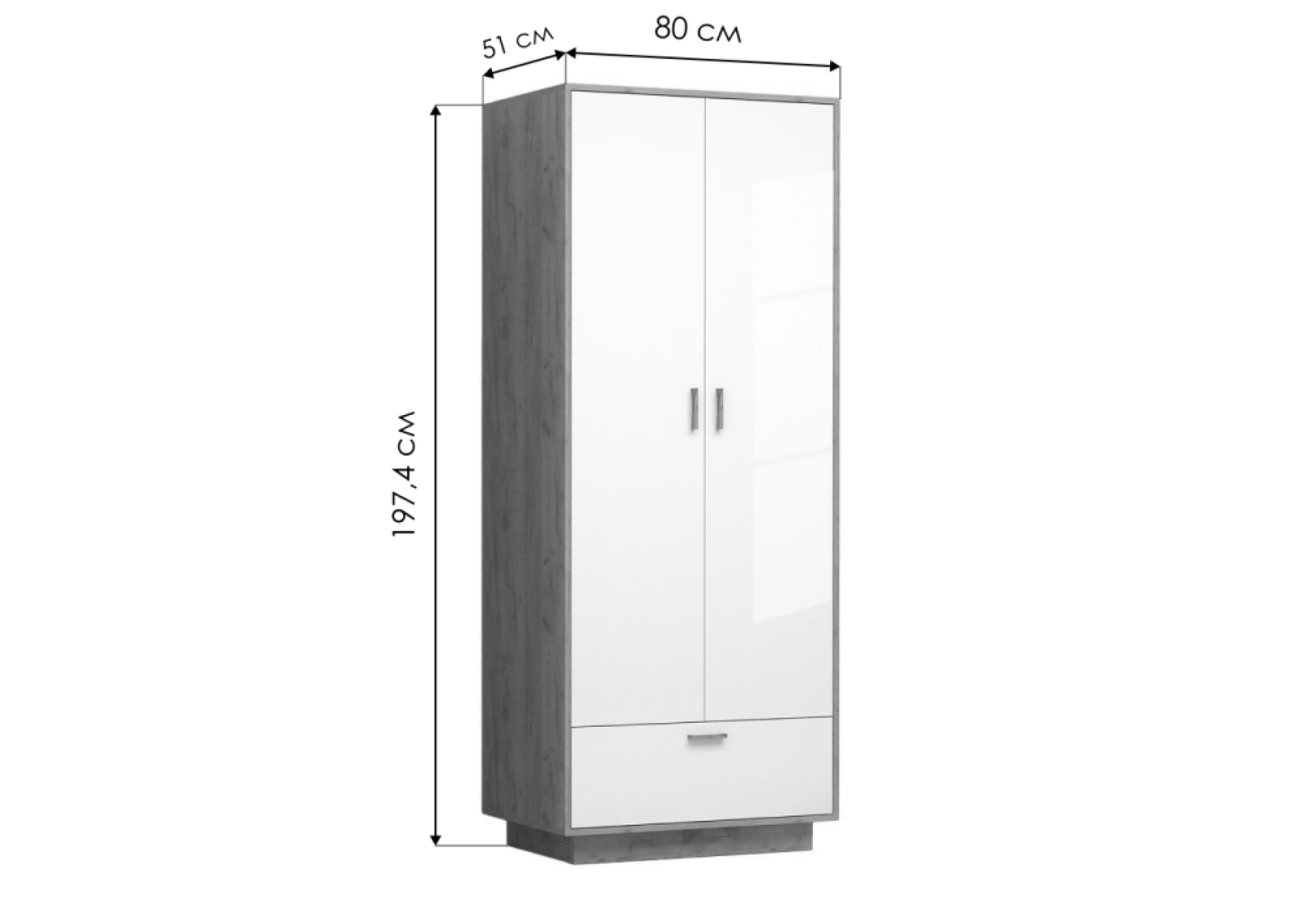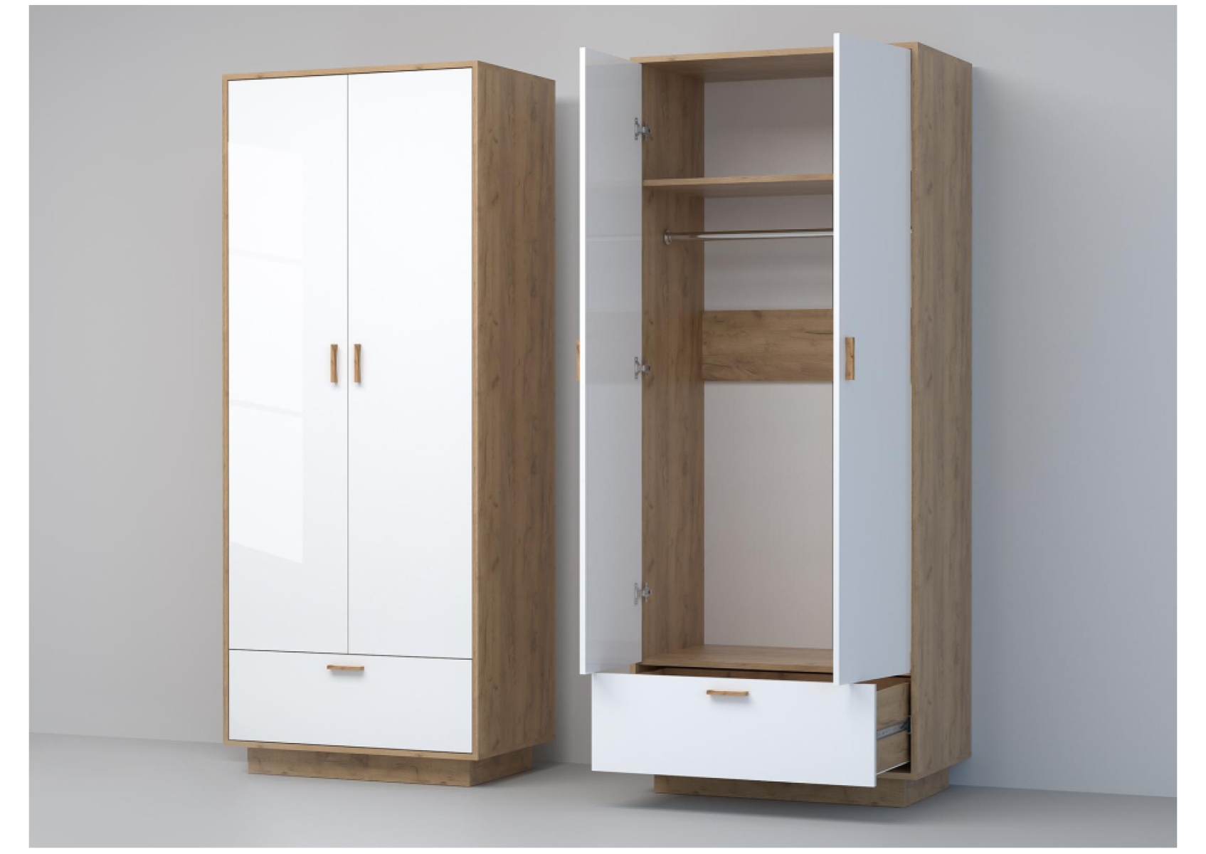 Шкаф Эго Шк-1 на подиуме дуб крафт золотой / белый глянец