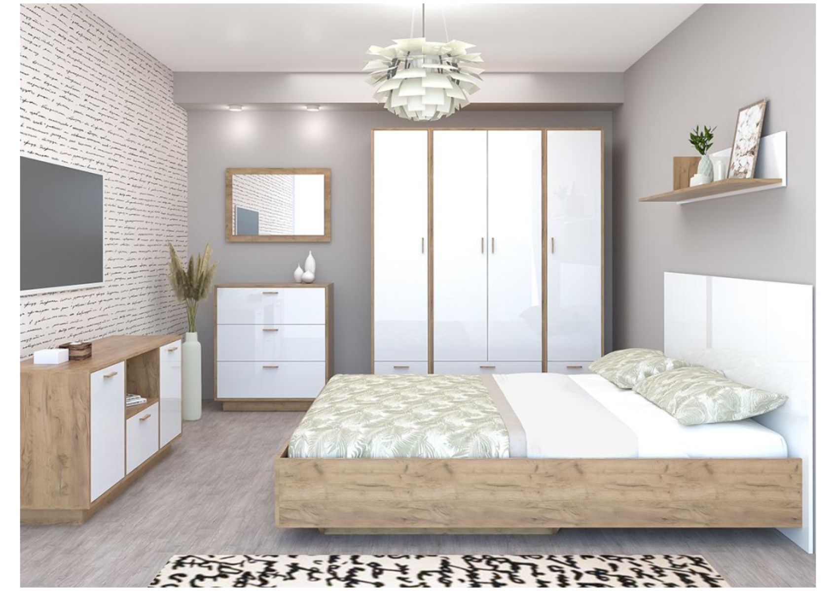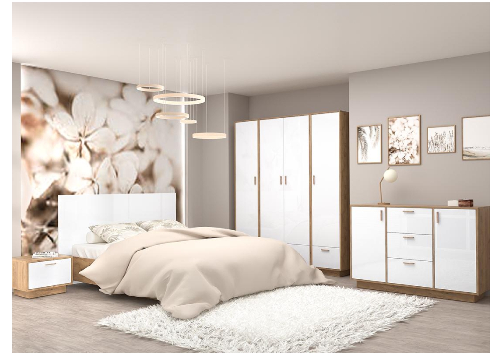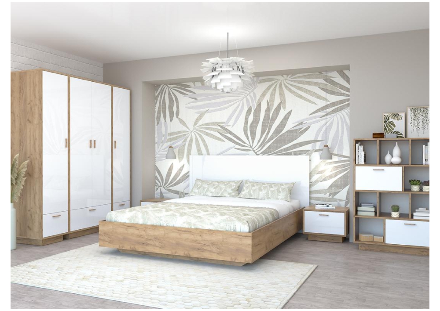 Шкаф Эго Шк-1 на подиуме дуб крафт золотой / белый глянец