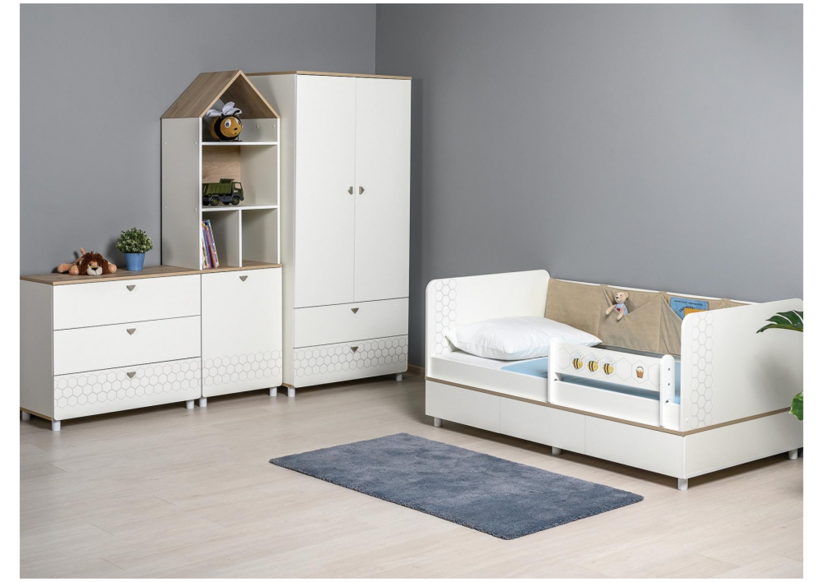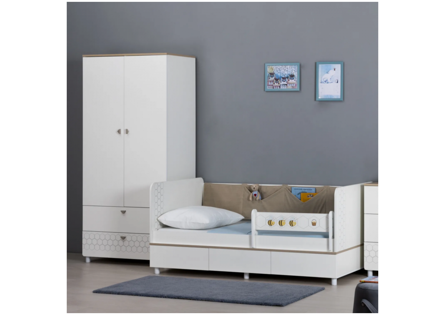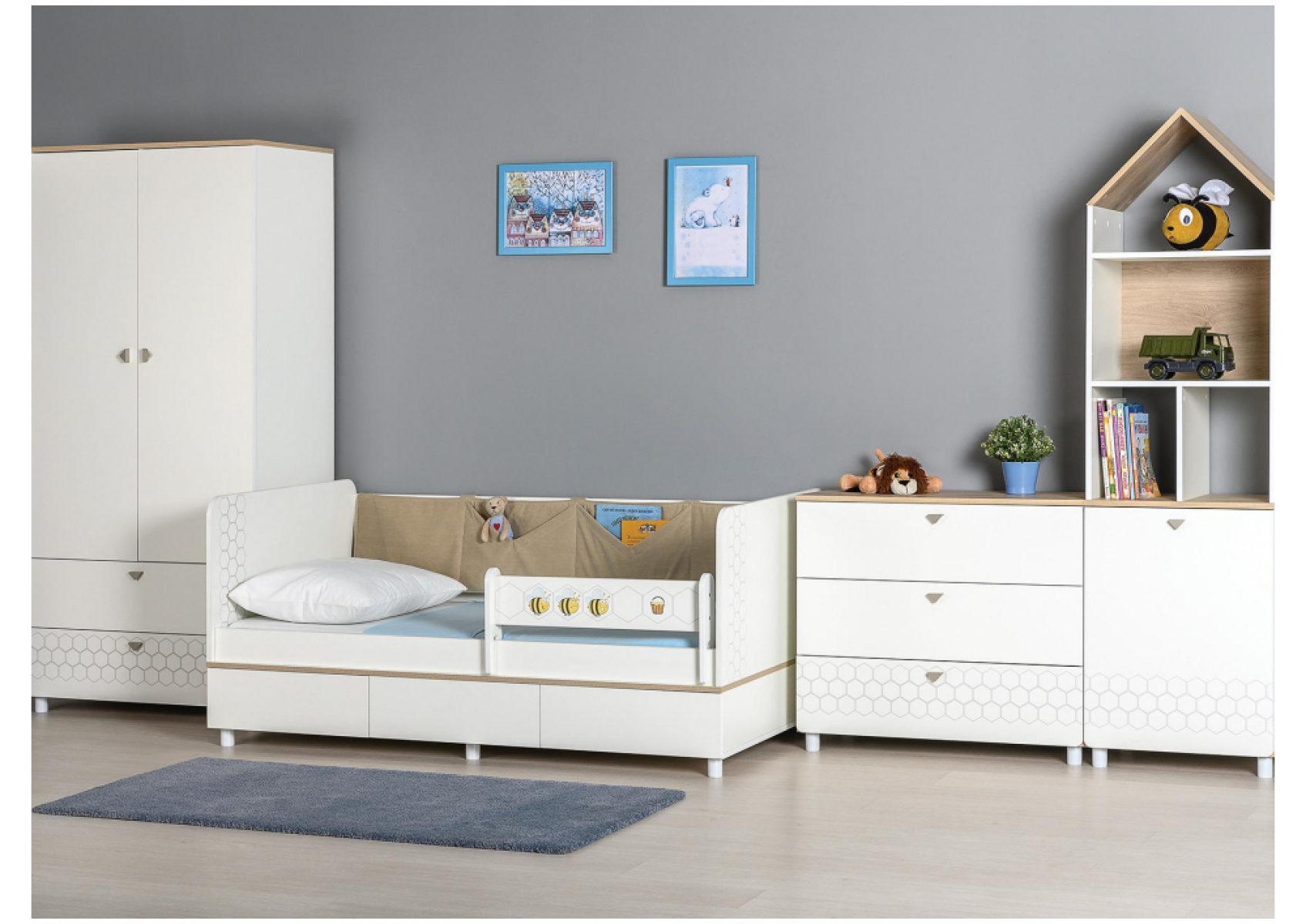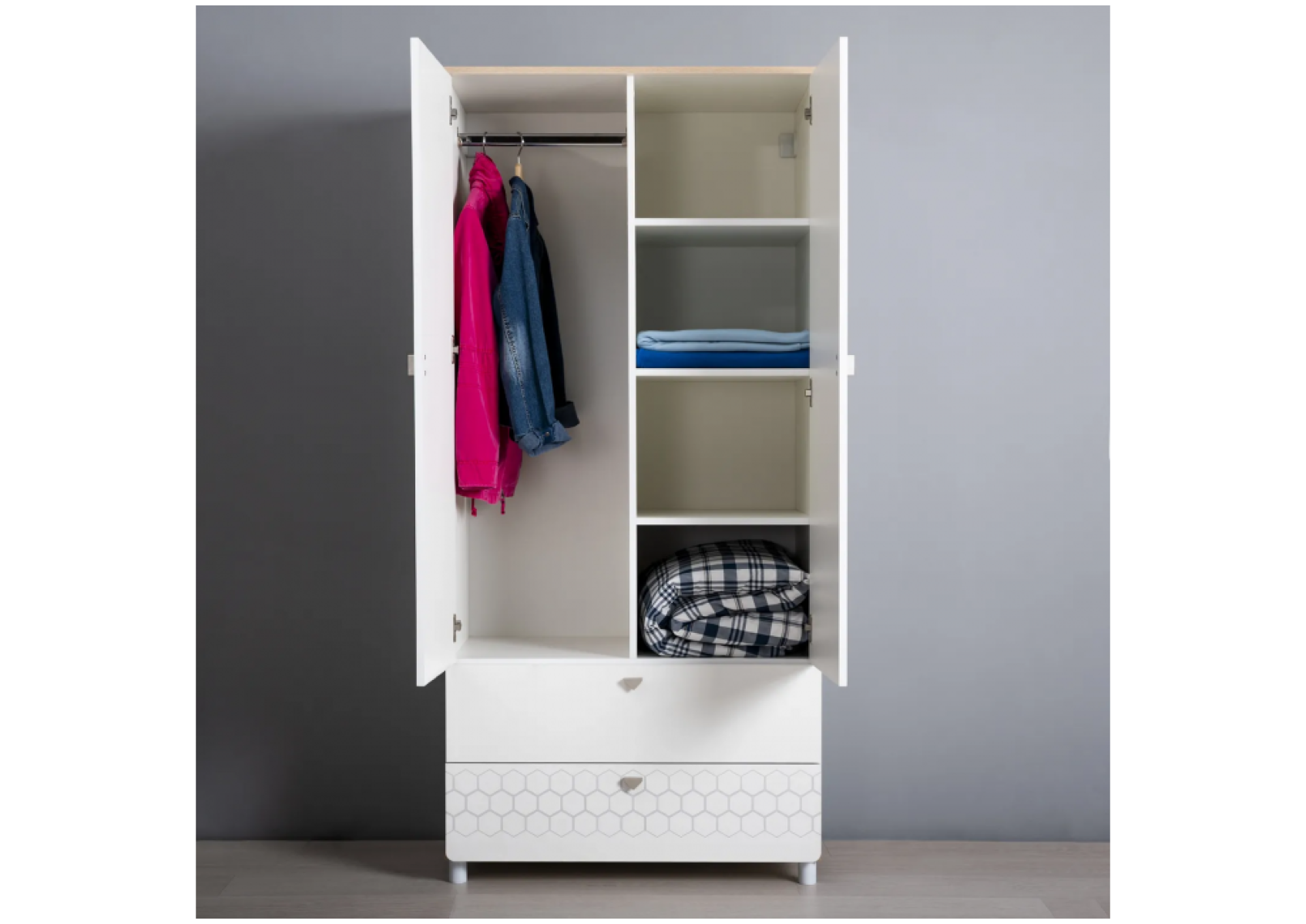 Шкаф Эльга белый шагрень / дуб белый exclusive