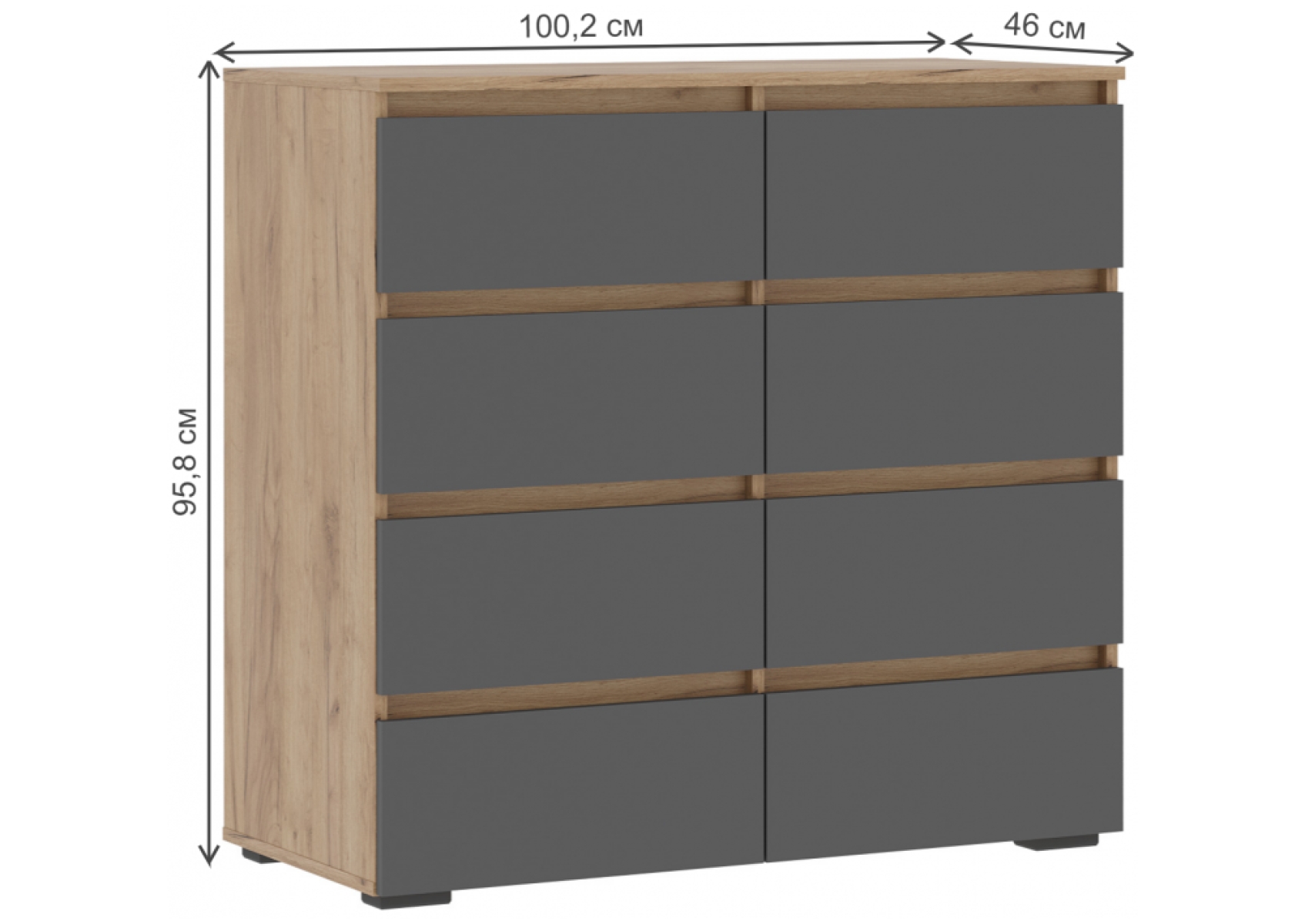 Комод Элла КМ 04 серый графит 0162 / дуб крафт золото