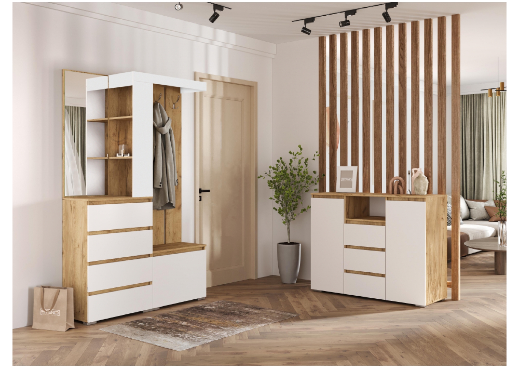 Модульная прихожая Элла комплектация 1 белый / дуб крафт золото