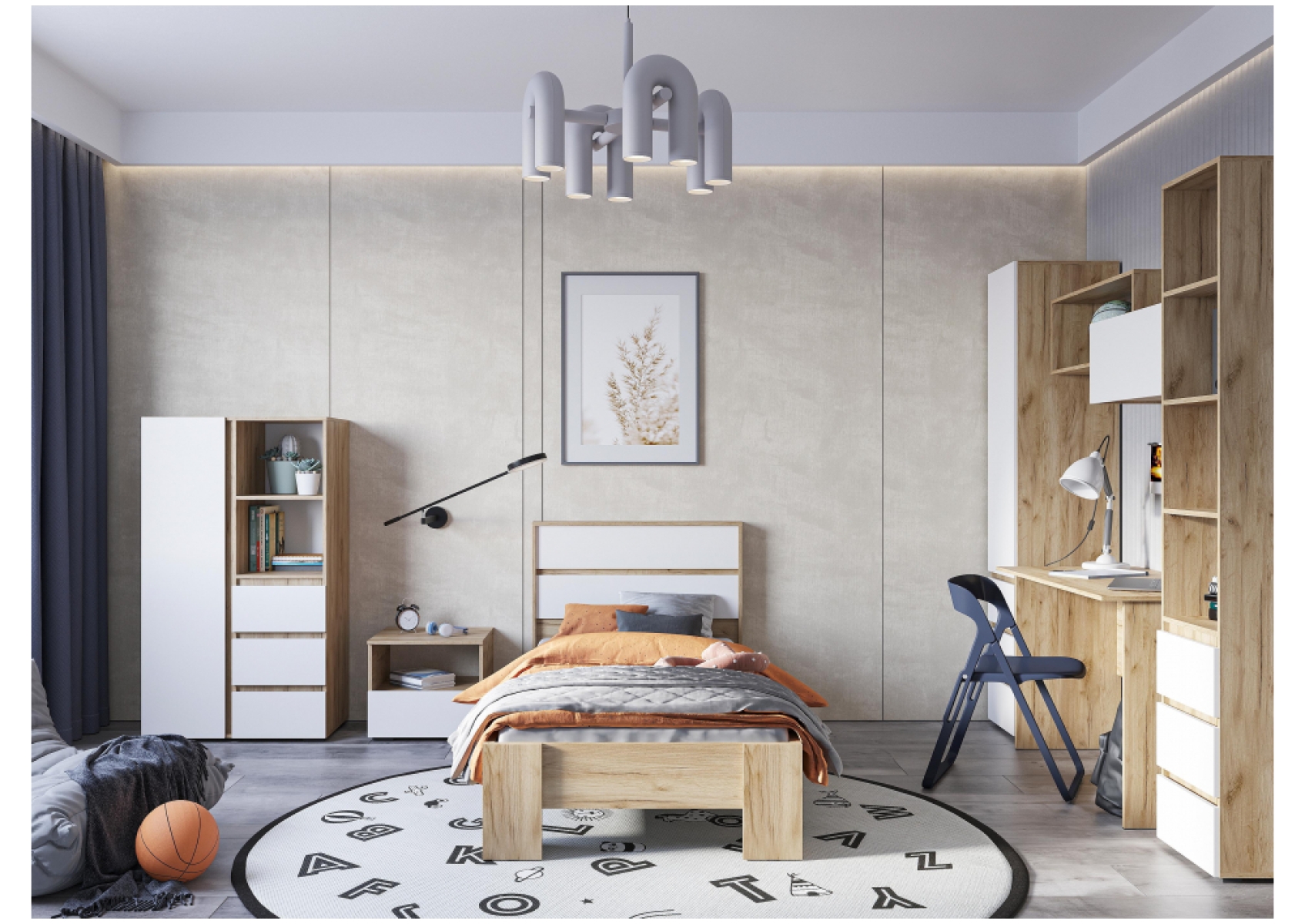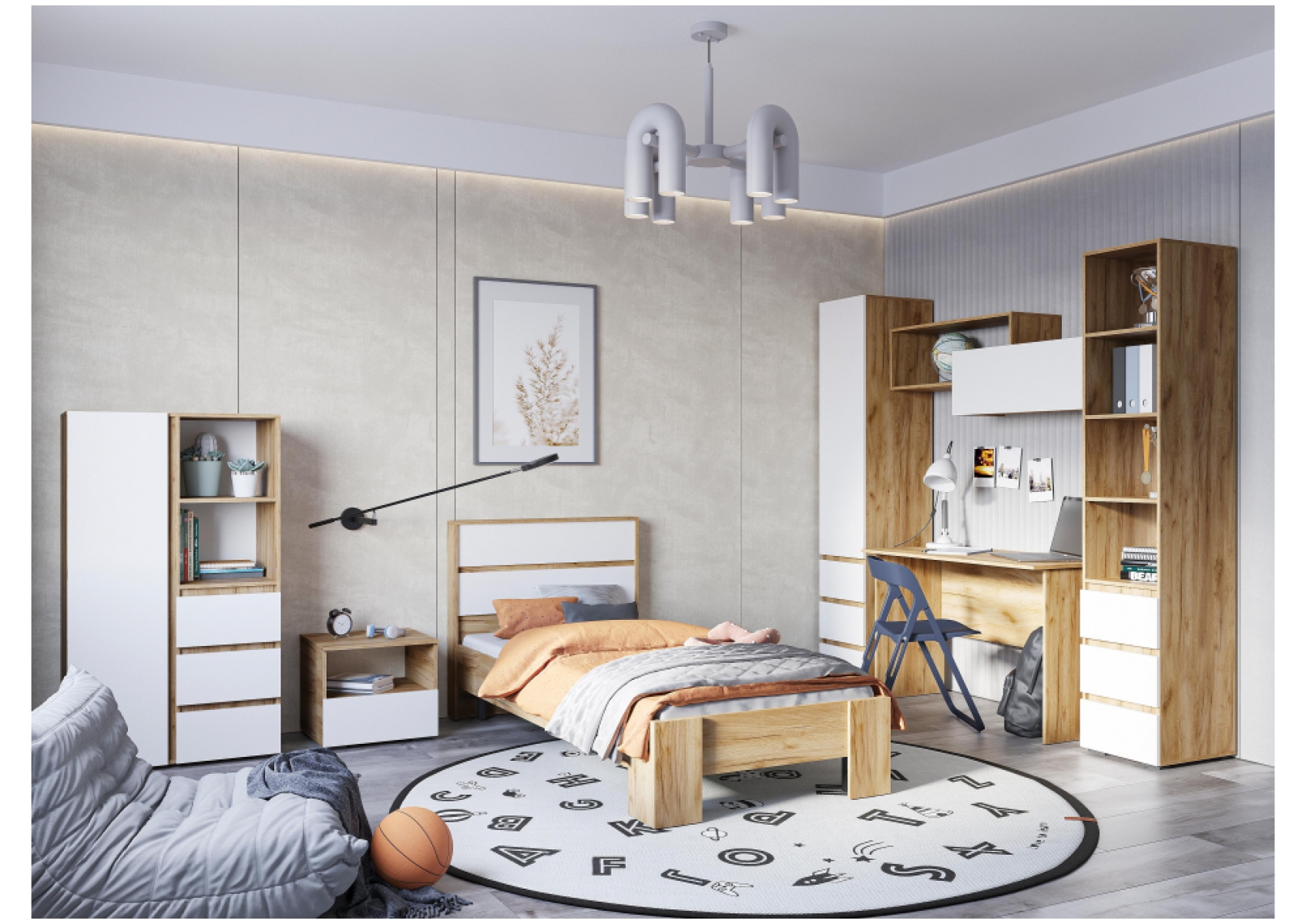 Односпальная кровать Элла КР 01 90х200 белый / дуб крафт золото