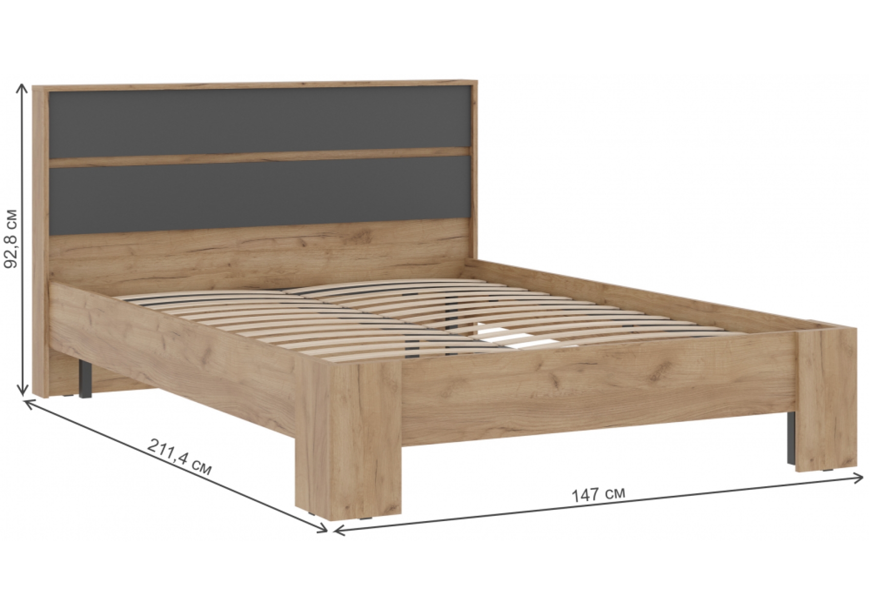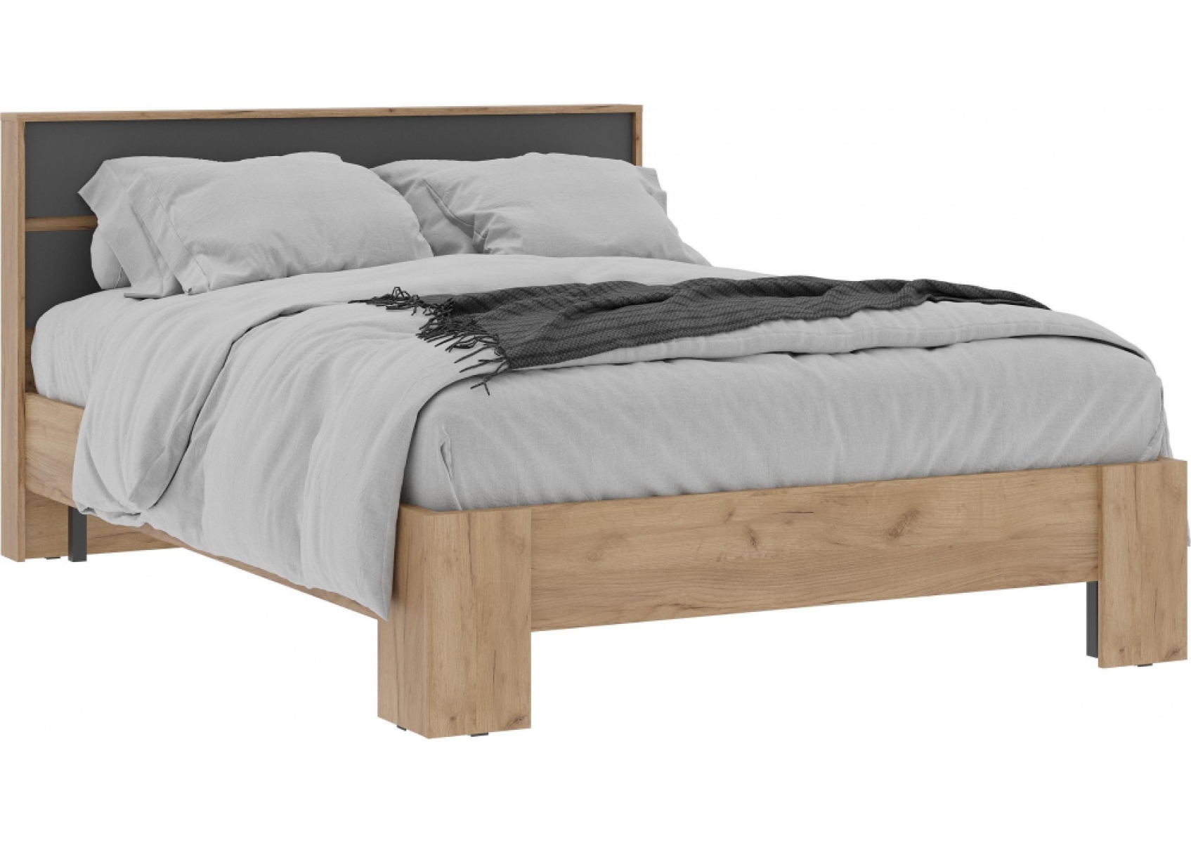 Полутораспальная кровать Элла КР 02 140х200 серый графит 0162 / дуб крафт золото