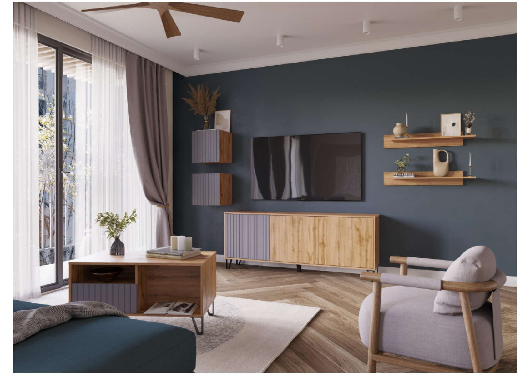 ТВ-тумба Эннис дуб вотан / графит софт