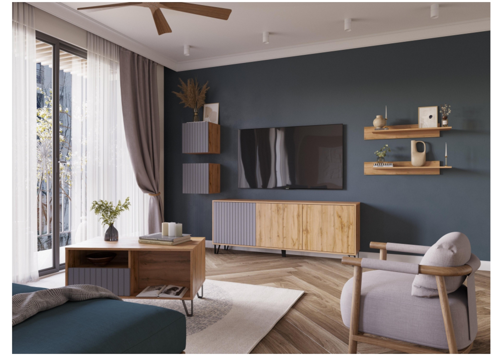 Шкаф навесной Эннис дуб вотан / графит софт