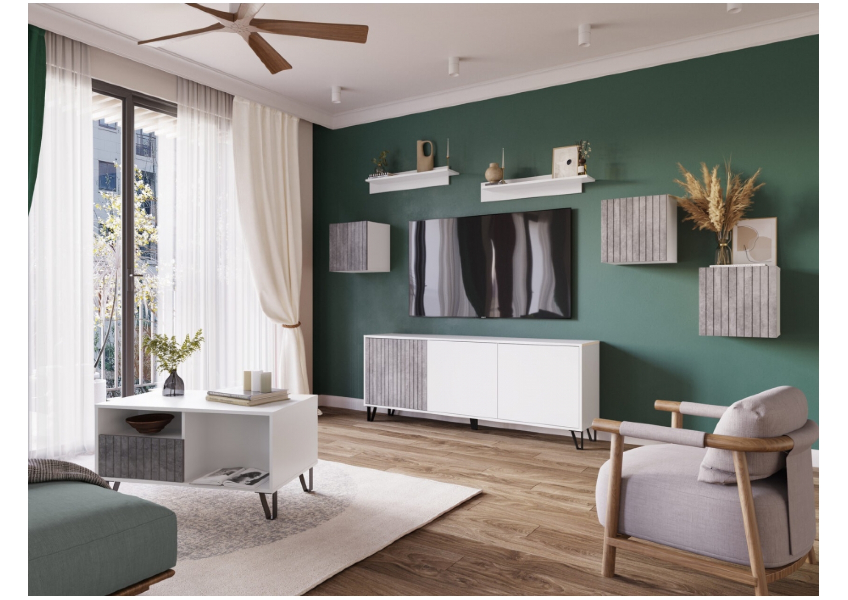 Модульная гостиная Эннис комплектация 2 белый / бетон светлый