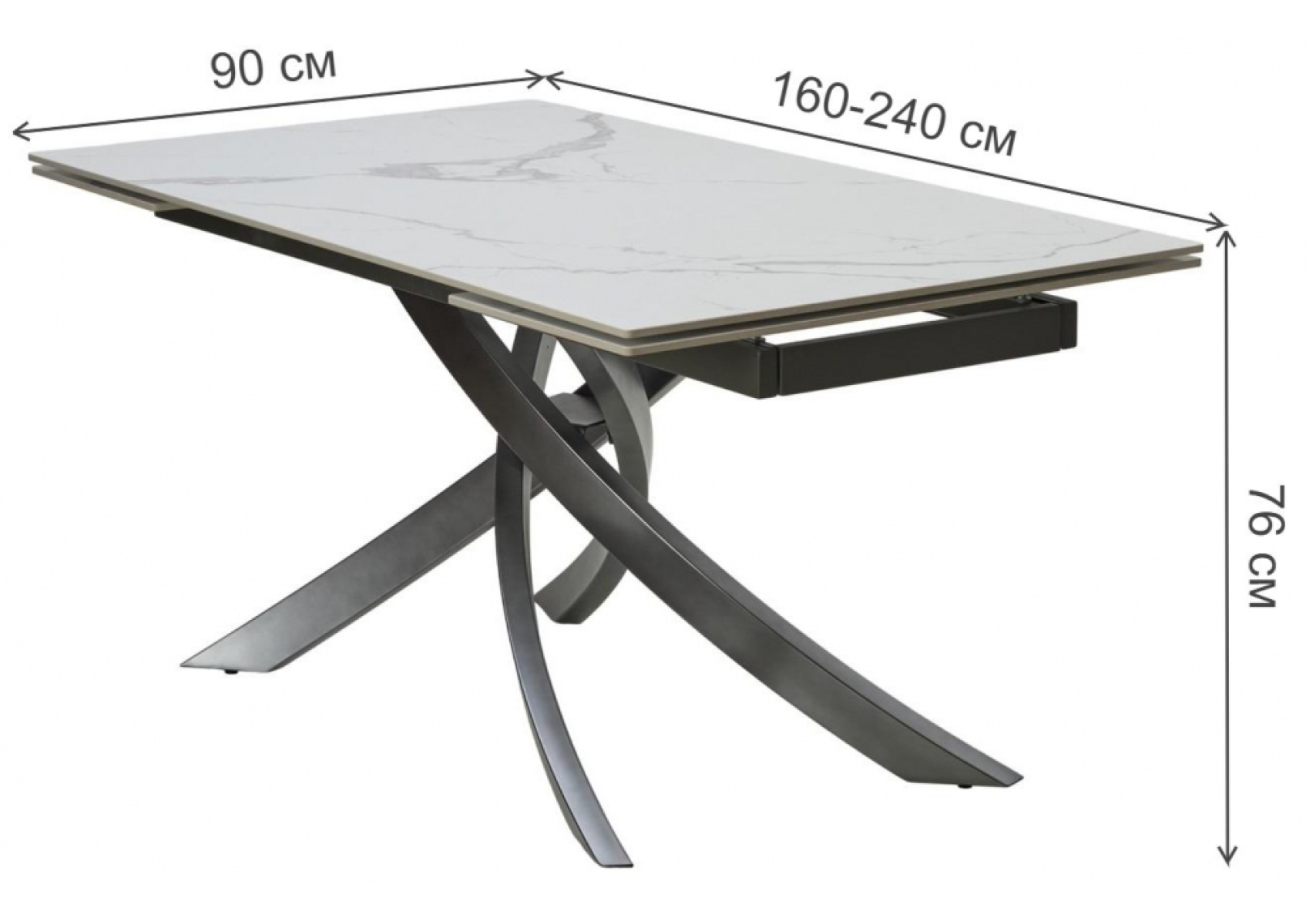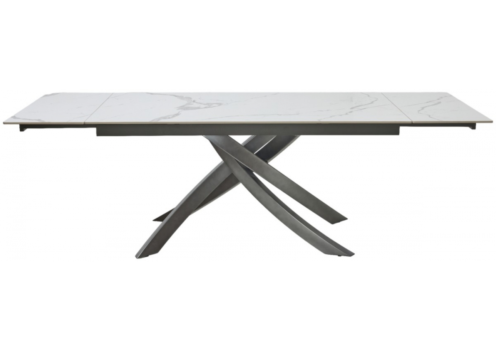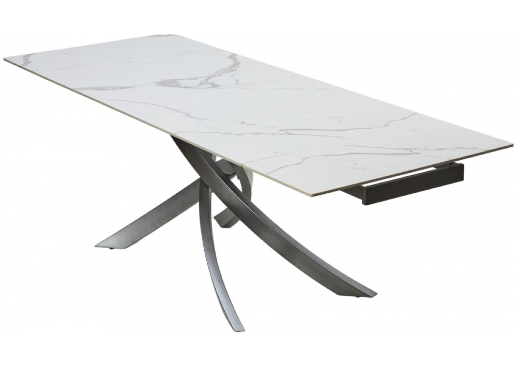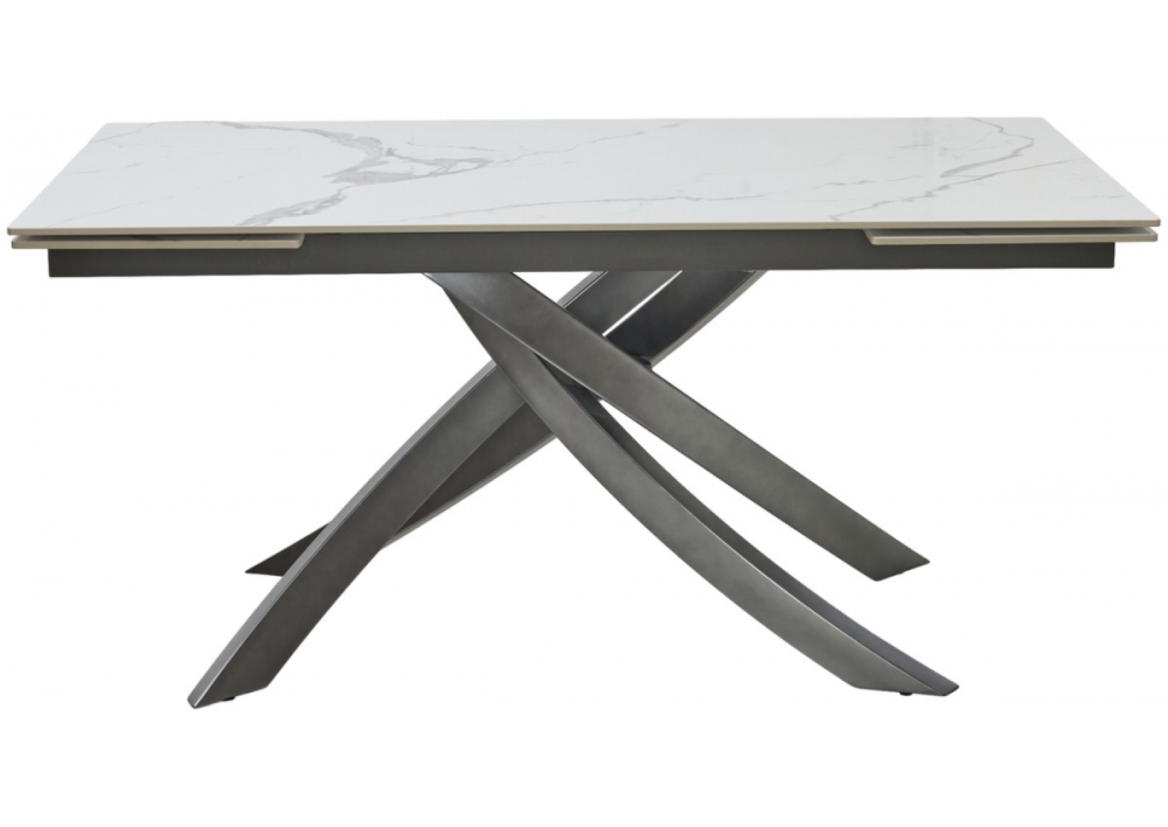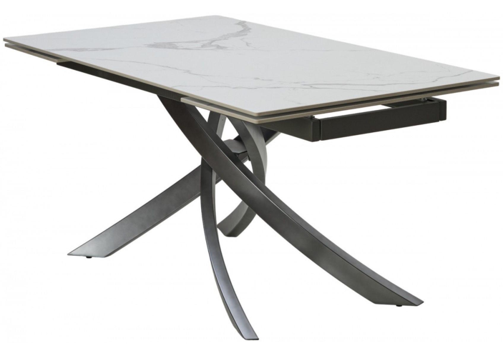 Керамический стол Estebio 160 gloss statuario white solid ceramic / серый металлик