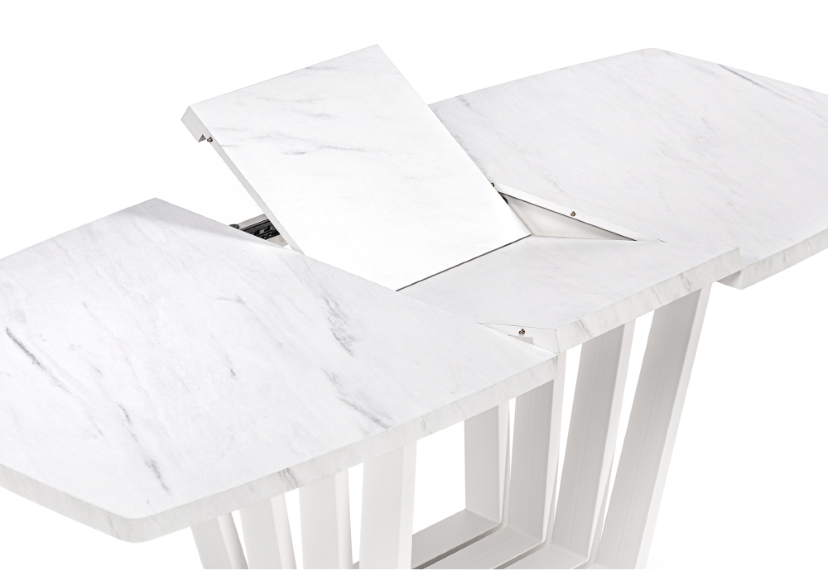 Стол на тумбе Эудес 160(205)х90х76 мрамор леванто белый / белый