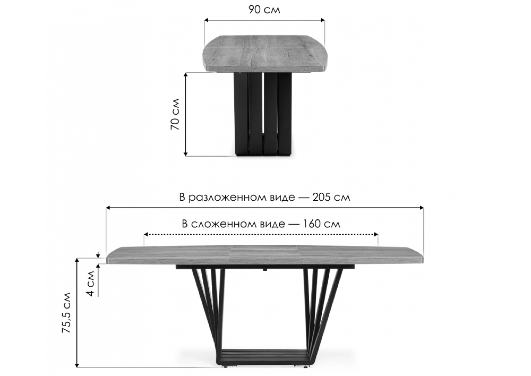 Длина стола в разложенном виде