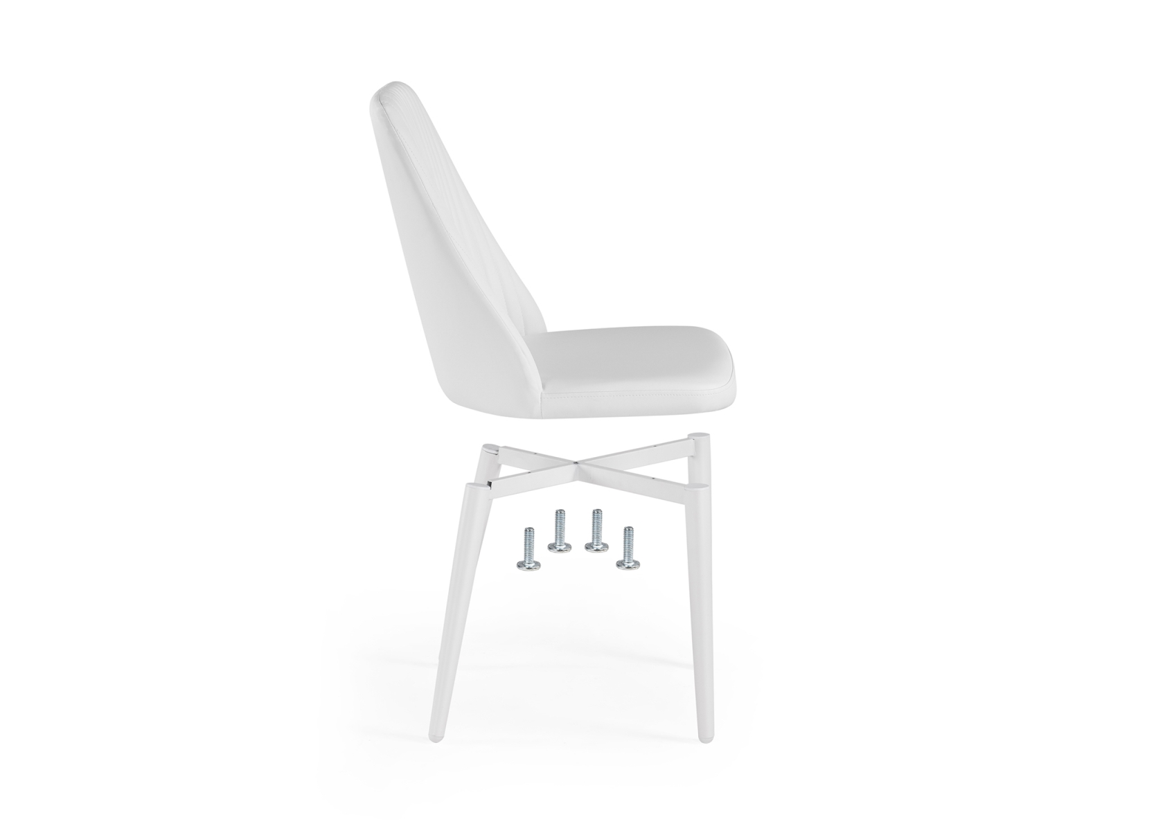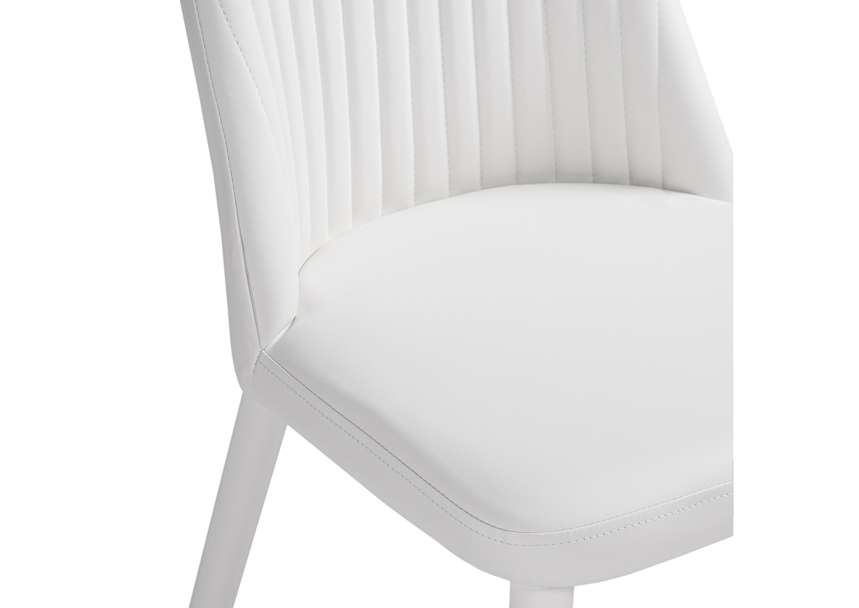 Стул Фена с металлическим каркасом и экокожаной обивкой сиденья и спинки, украшенный интересным рисунком в виде вертикальных линий на спинке, является стильным и удобным решением для интерьера. Металлический каркас обеспечивает прочность и надежность стула, а экокожа делает его удобным и легким в уходе. Рисунок на спинке добавляет интересный акцент в дизайн стула, что позволяет использовать его в качестве декоративного элемента в любой комнате. Стул Фена хорошо подойдет для использования в кухне, баре, домашнем офисе или гостиной.