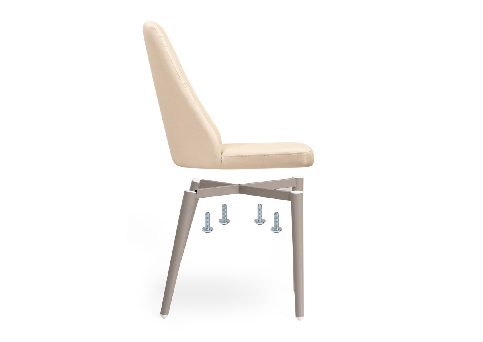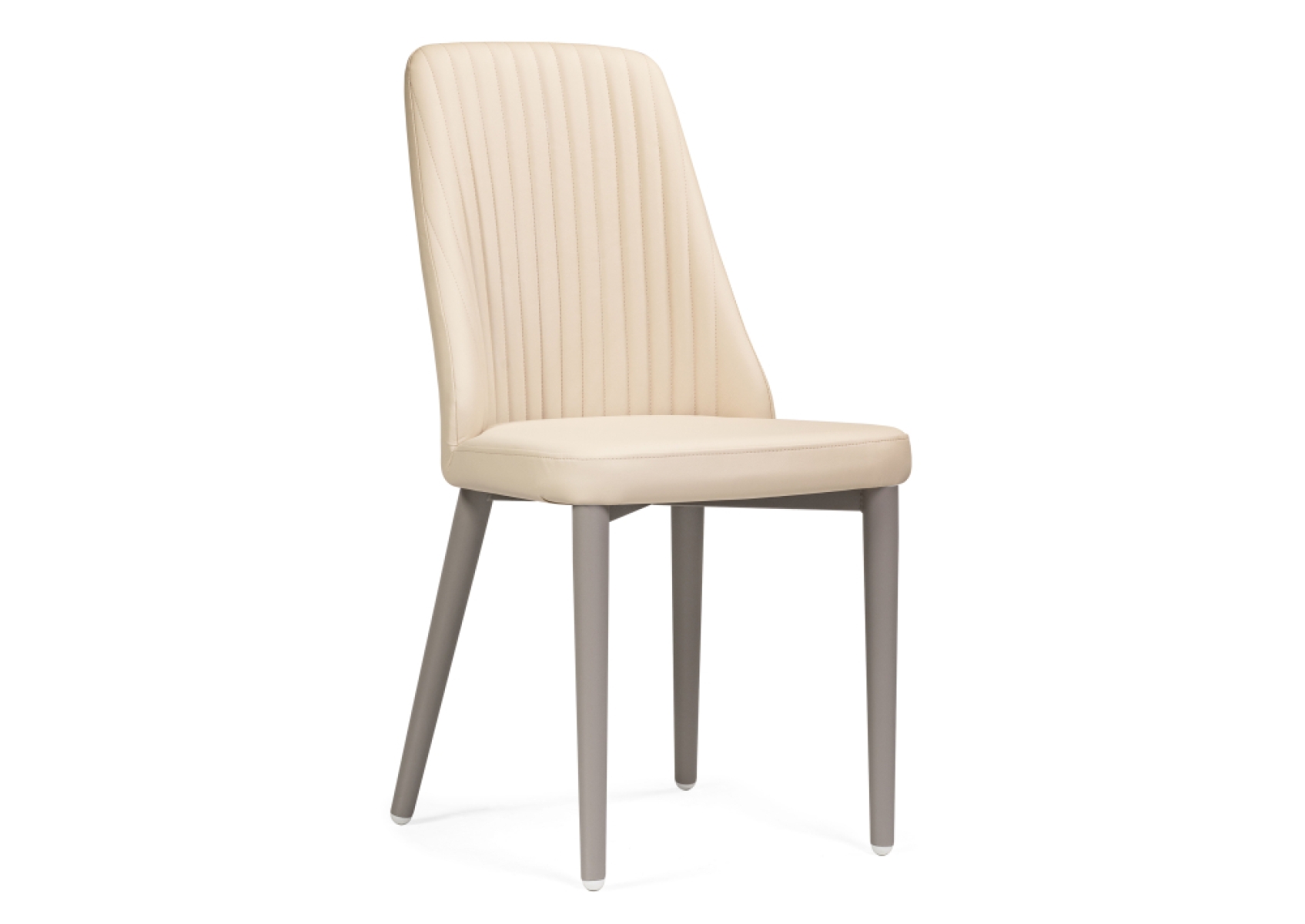 Стул Фена с металлическим каркасом и обивкой экокожи сиденья и спинки, украшенный интересным рисунком в виде вертикальных линий на спинке, является стильным и удобным решением для интерьера. Металлический каркас обеспечивает прочность и надежность стула, а экокожа делает его удобным и легким в уходе. Рисунок на спинке добавляет интересный акцент в дизайн стула, что позволяет использовать его в качестве декоративного элемента в любой комнате. Стул Фена хорошо подойдет для использования в кухне, баре, домашнем офисе или гостиной.