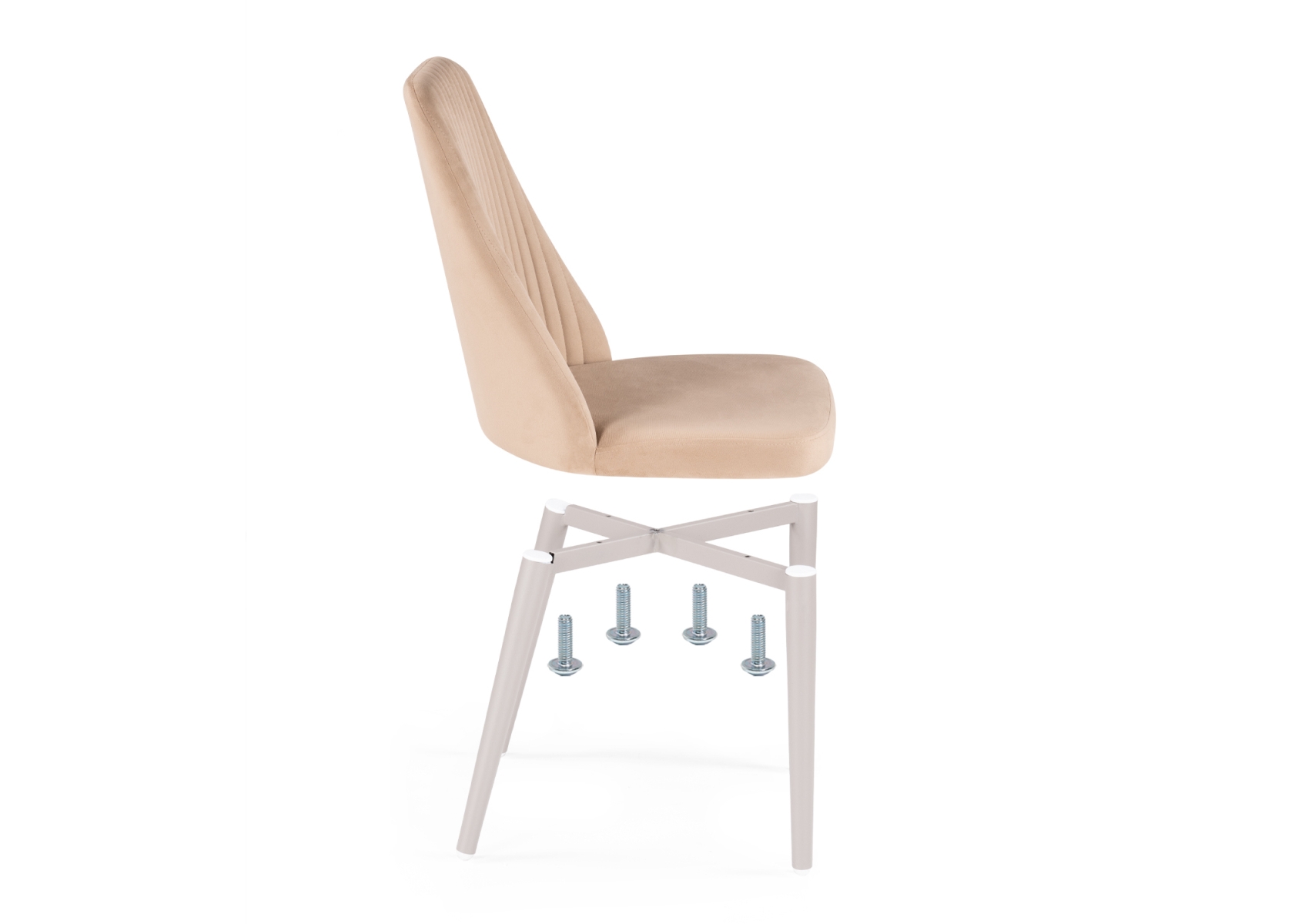 Стул Фена с металлическим каркасом и тканевой обивкой сиденья и спинки, украшенный интересным рисунком в виде вертикальных линий на спинке, является стильным и удобным решением для интерьера. Металлический каркас обеспечивает прочность и надежность стула, а ткань делает его удобным и легким в уходе. Рисунок на спинке добавляет интересный акцент в дизайн стула, что позволяет использовать его в качестве декоративного элемента в любой комнате. Стул Фена хорошо подойдет для использования в кухне, баре, домашнем офисе или гостиной.