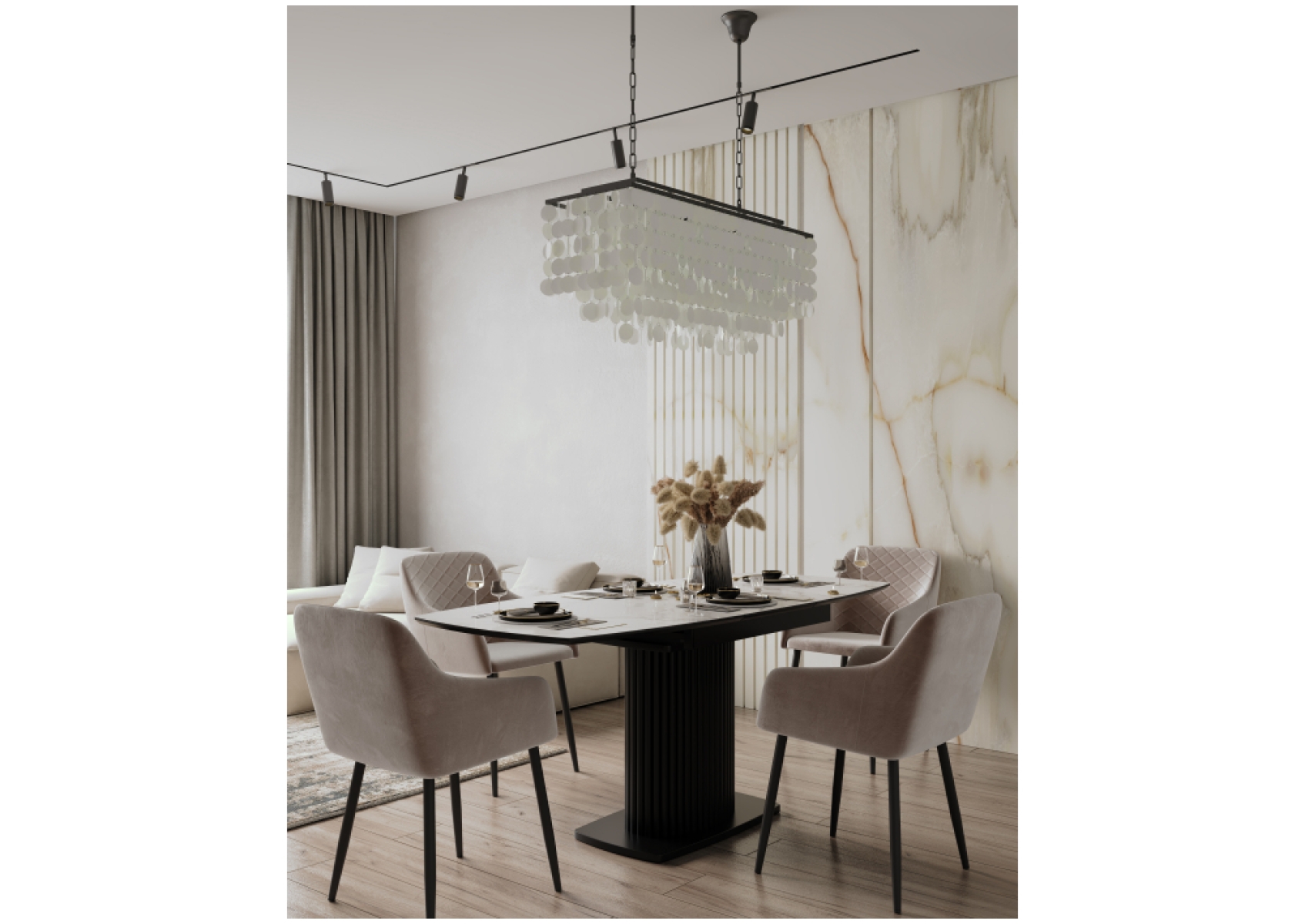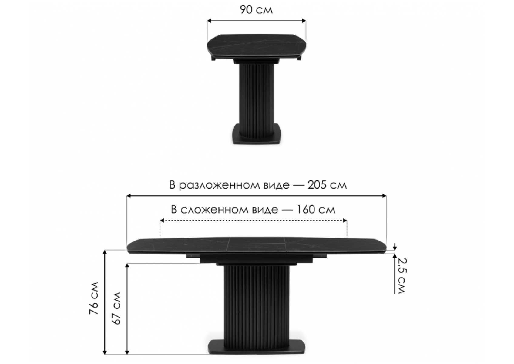 Керамический стол Фестер 160(205)х90х76 белый мрамор / черный