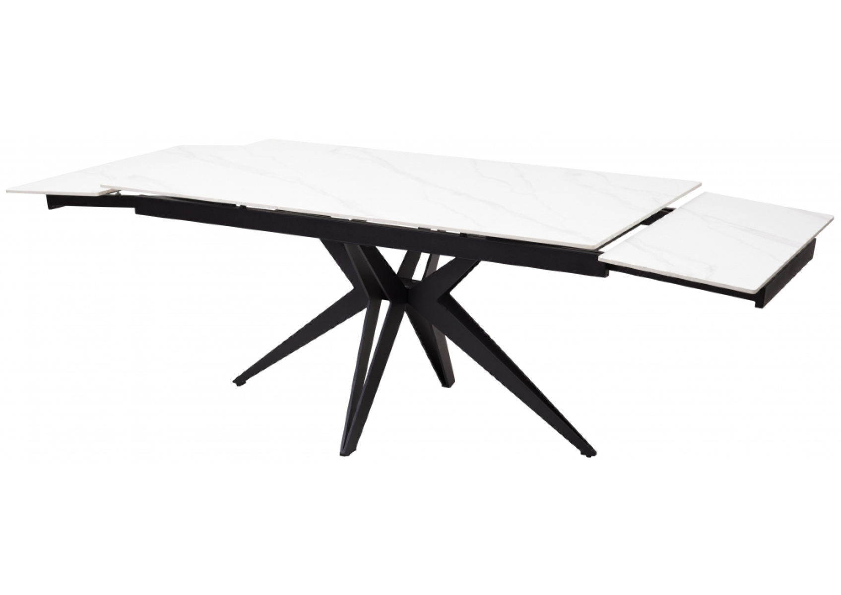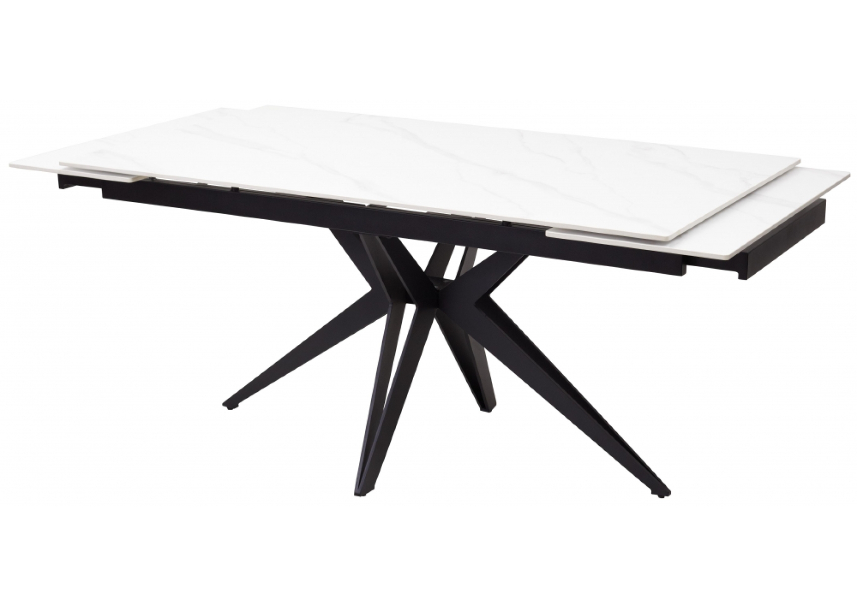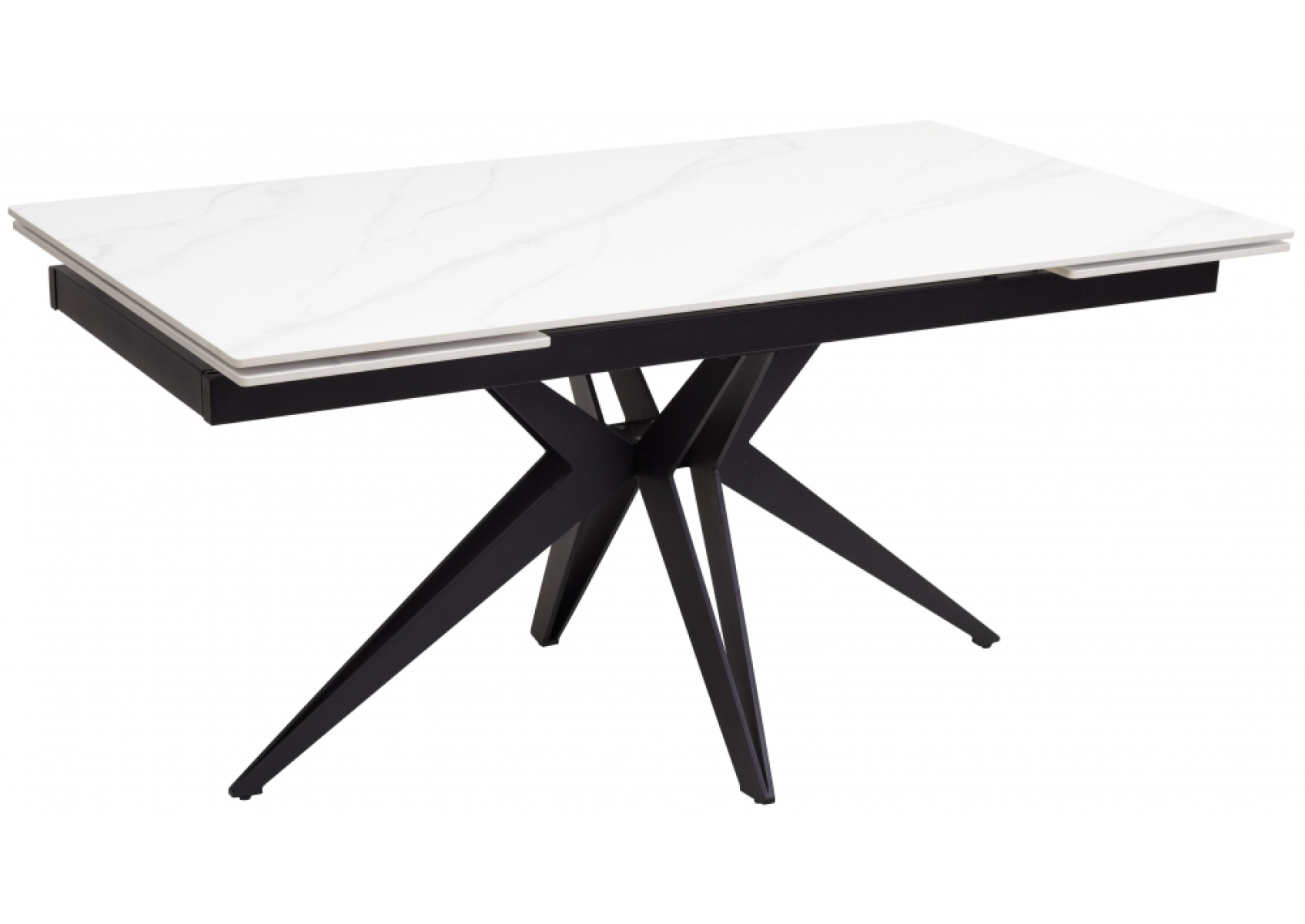 Керамический стол Forio 160 matt white marble sintered stone / black