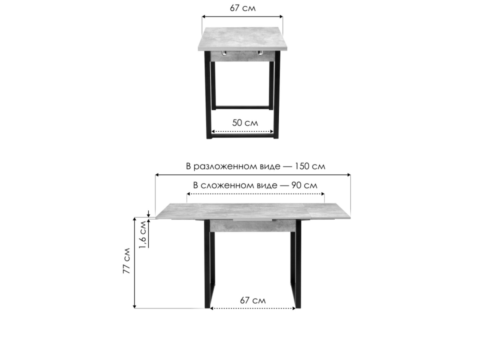 Длина стола в разложенном виде
