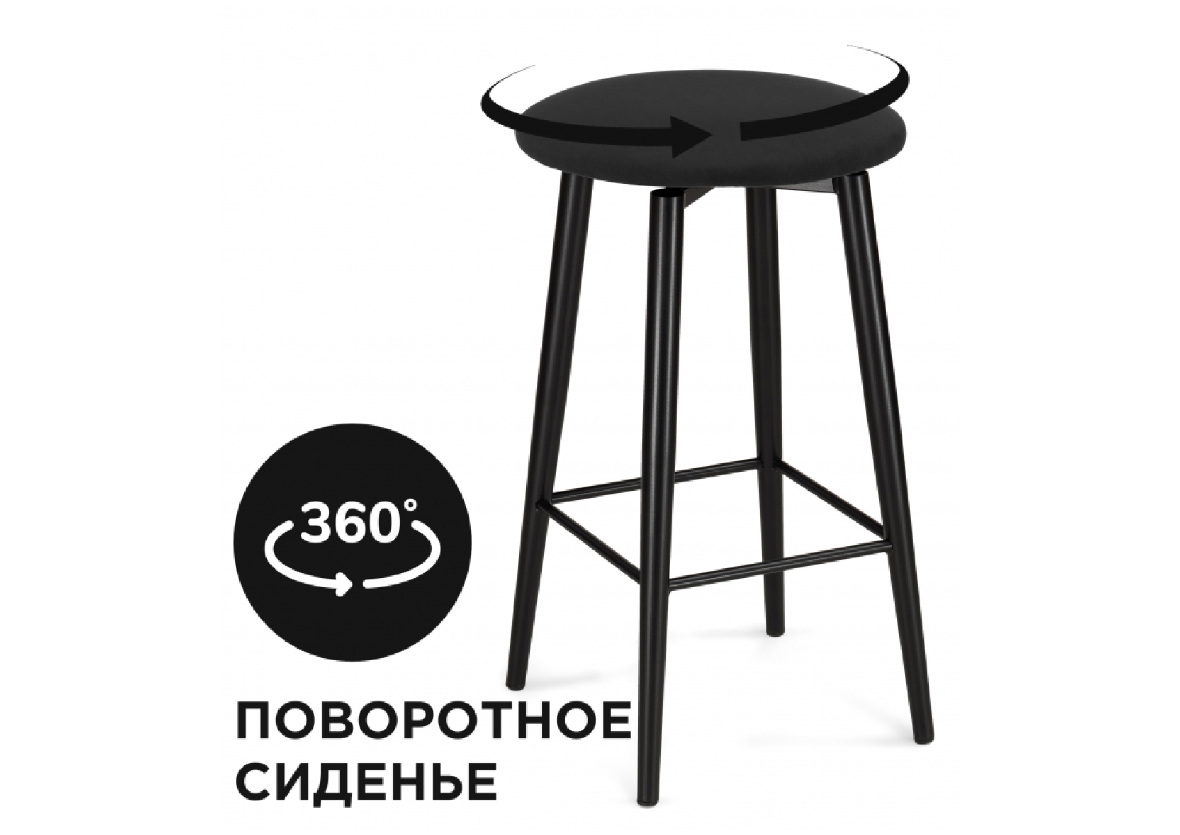 Полубарный стул Гангток крутящийся черный / черный матовый