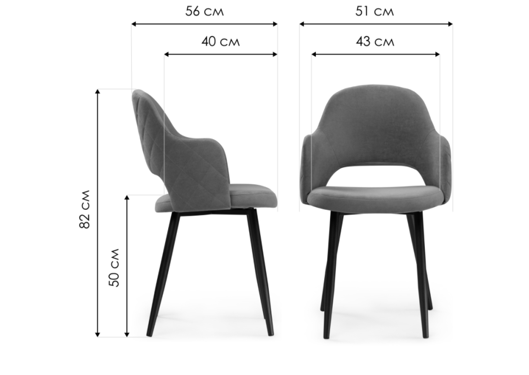 Стул на металлокаркасе Гутрид прошивка ромбы сзади темно-серый / черный