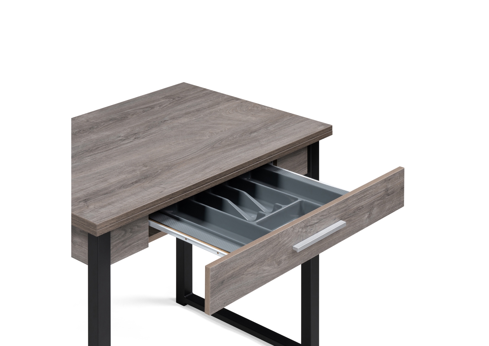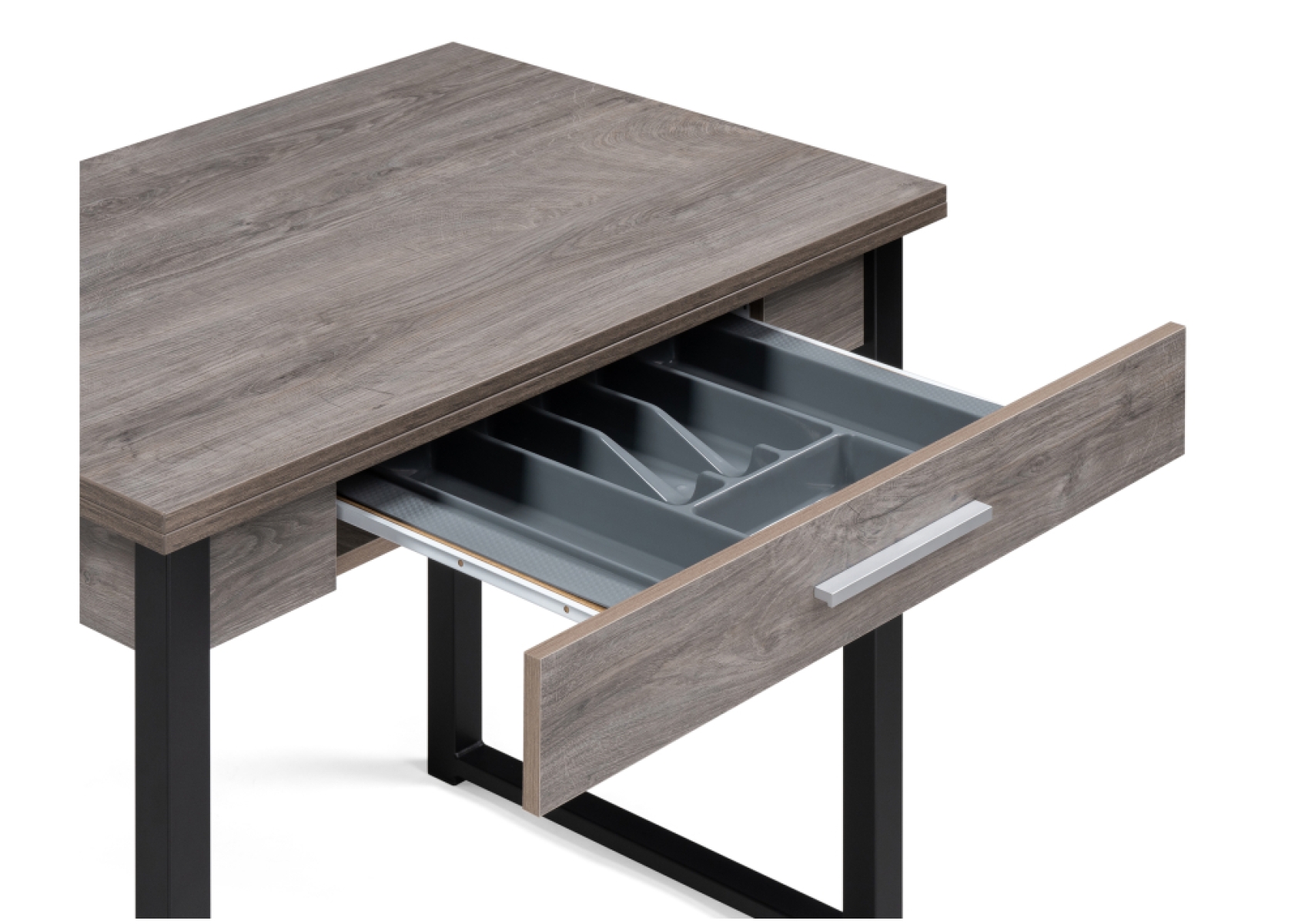 Стол Ибби с деревянной столешницей из ЛДСП и ножками из металла - это отличное решение для тех, кто ищет компактный стол для небольшой кухни. Его возможность раскладываться с 90 см до 128 см позволяет использовать его для различных нужд. Кроме того, наличие ящика для хранения столовых приборов делает его еще более удобным и функциональным.