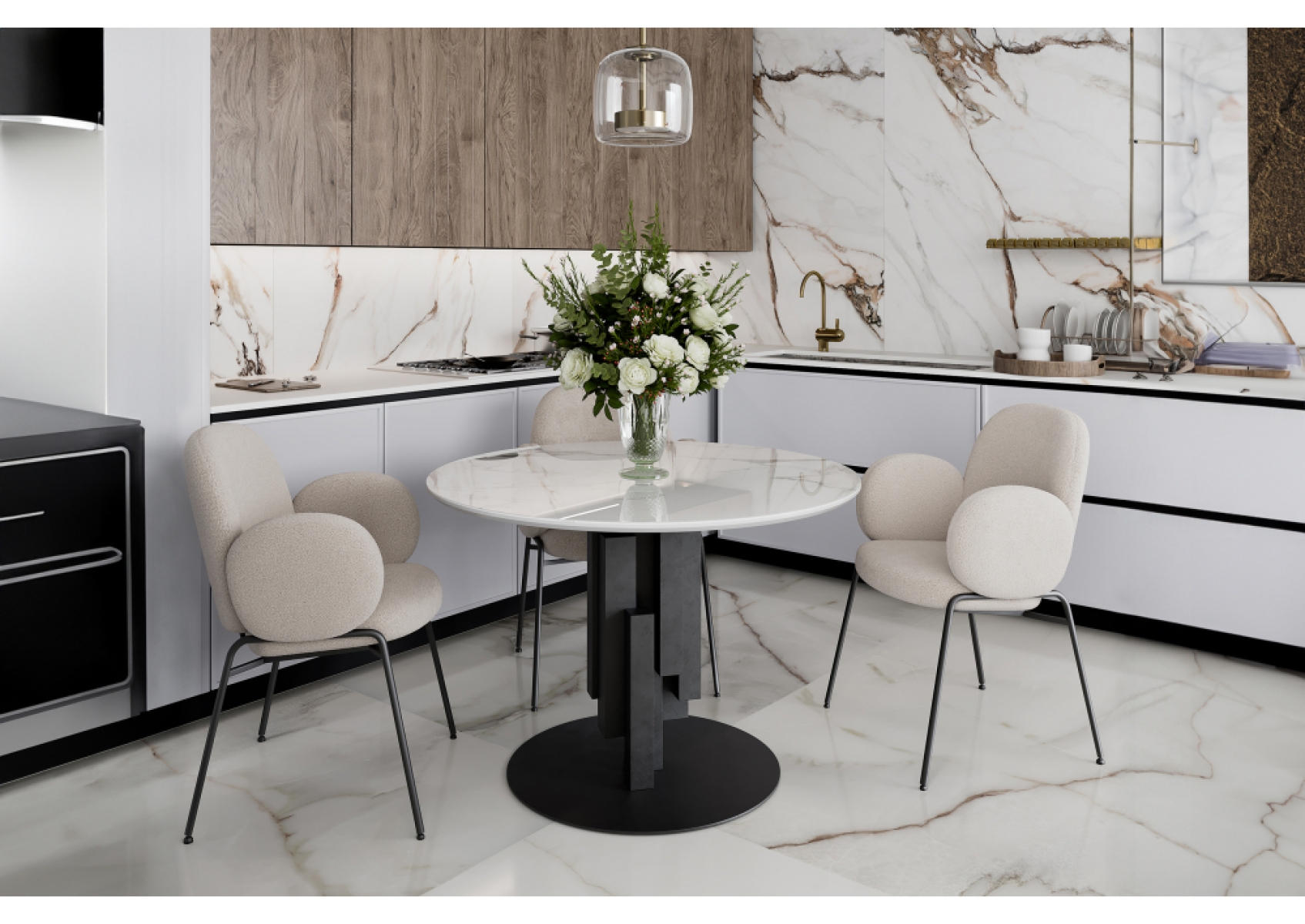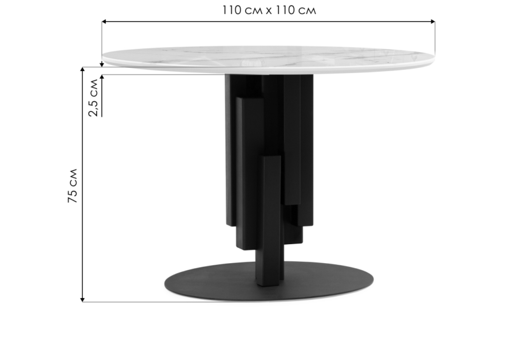 Стеклянный стол Калипсо 110х75 белый мрамор / черный