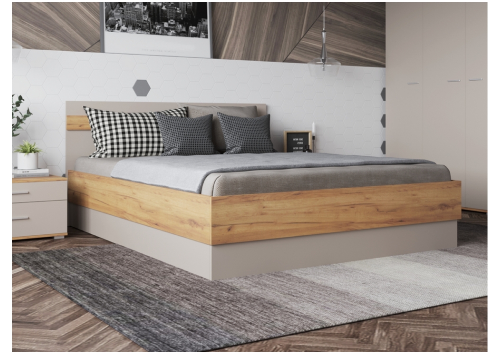 Полутораспальная кровать Кассандра 140х200 дуб крафт золотой / кашемир
