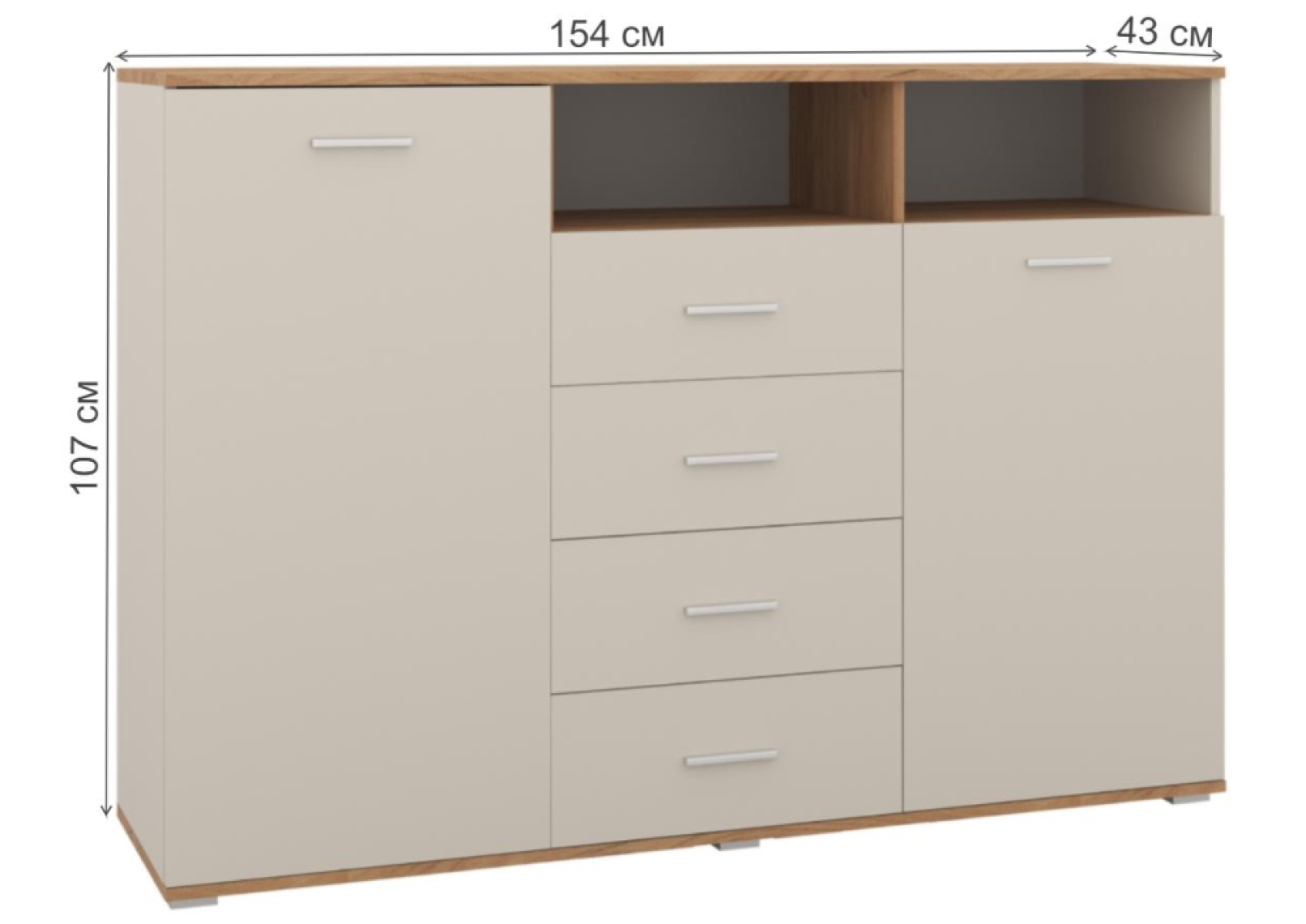 Комод Кассандра 154 дуб крафт золотой / кашемир