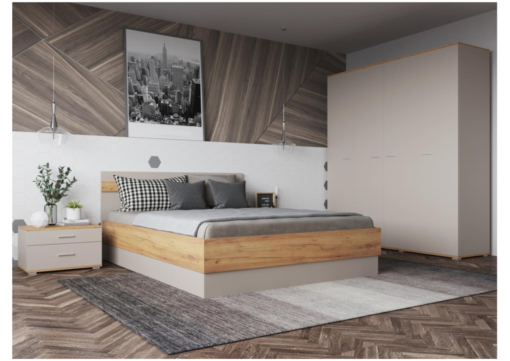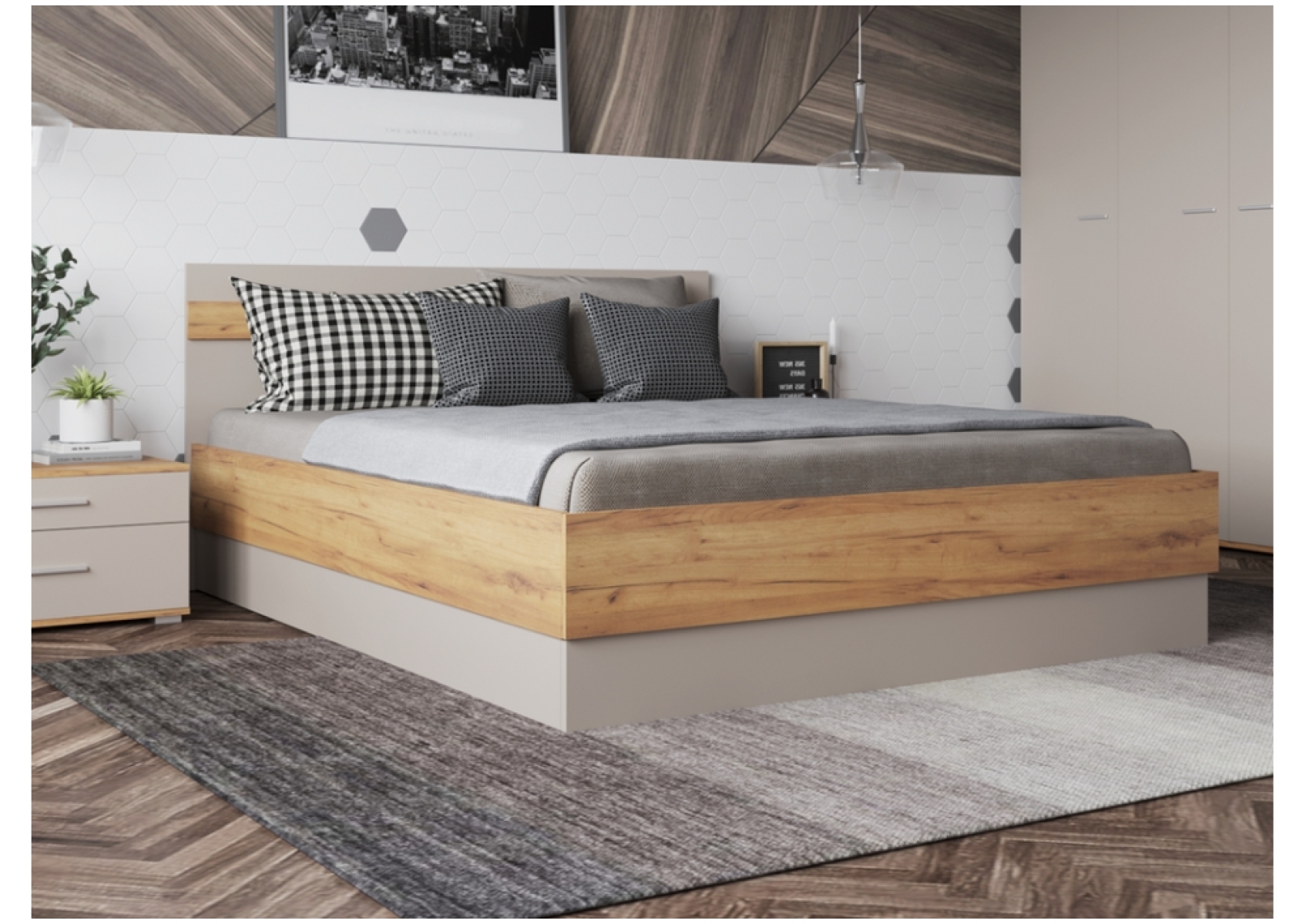 Кровать Кассандра 160х200 дуб крафт золотой / кашемир