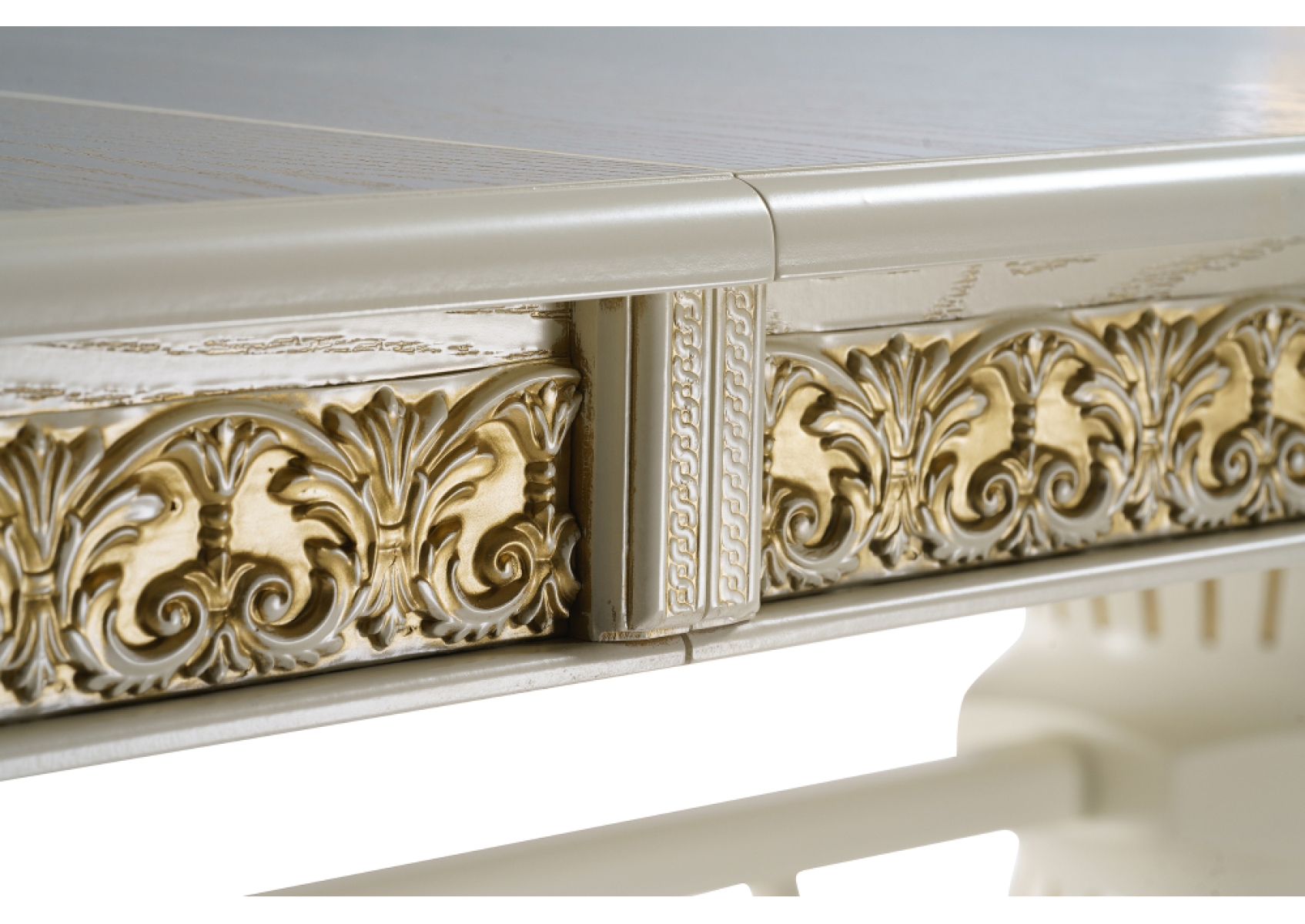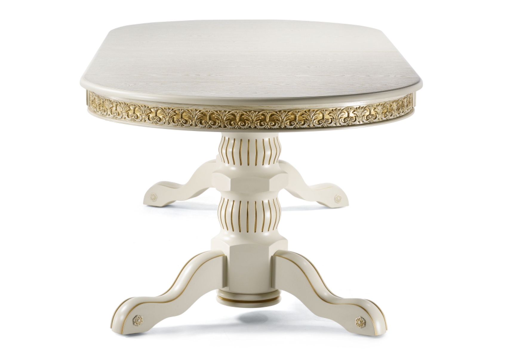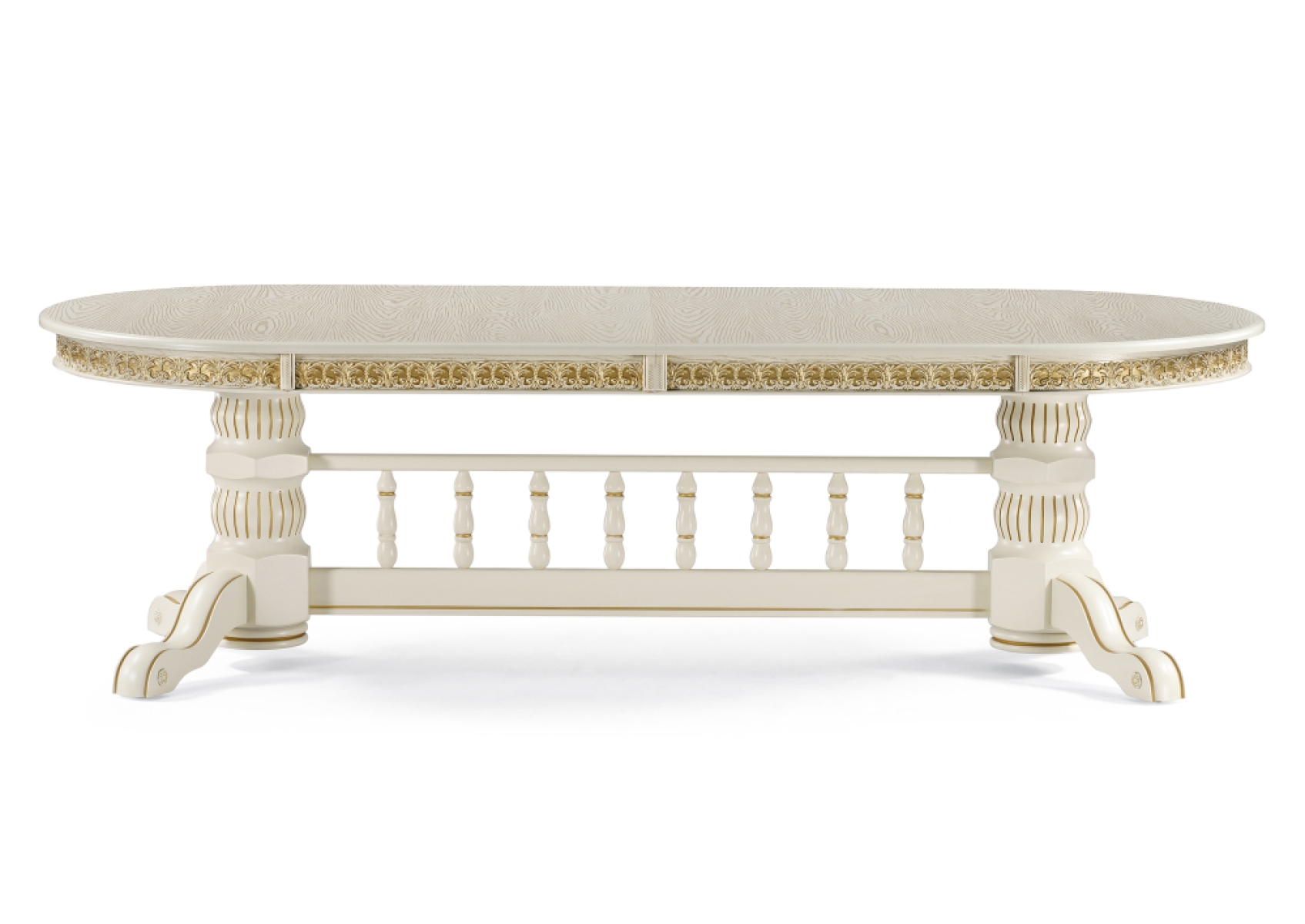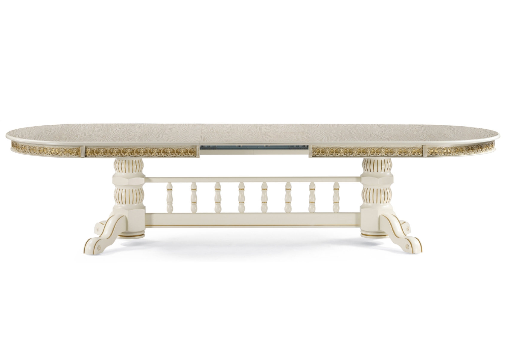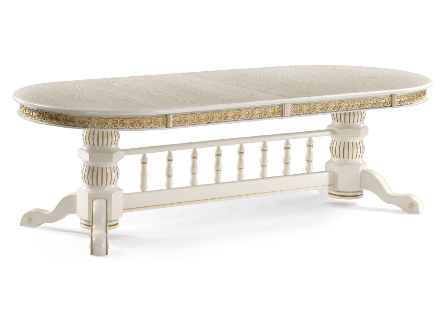 Деревянный стол Кассиль 260(330)х110х77 слоновая кость с золотой патиной
