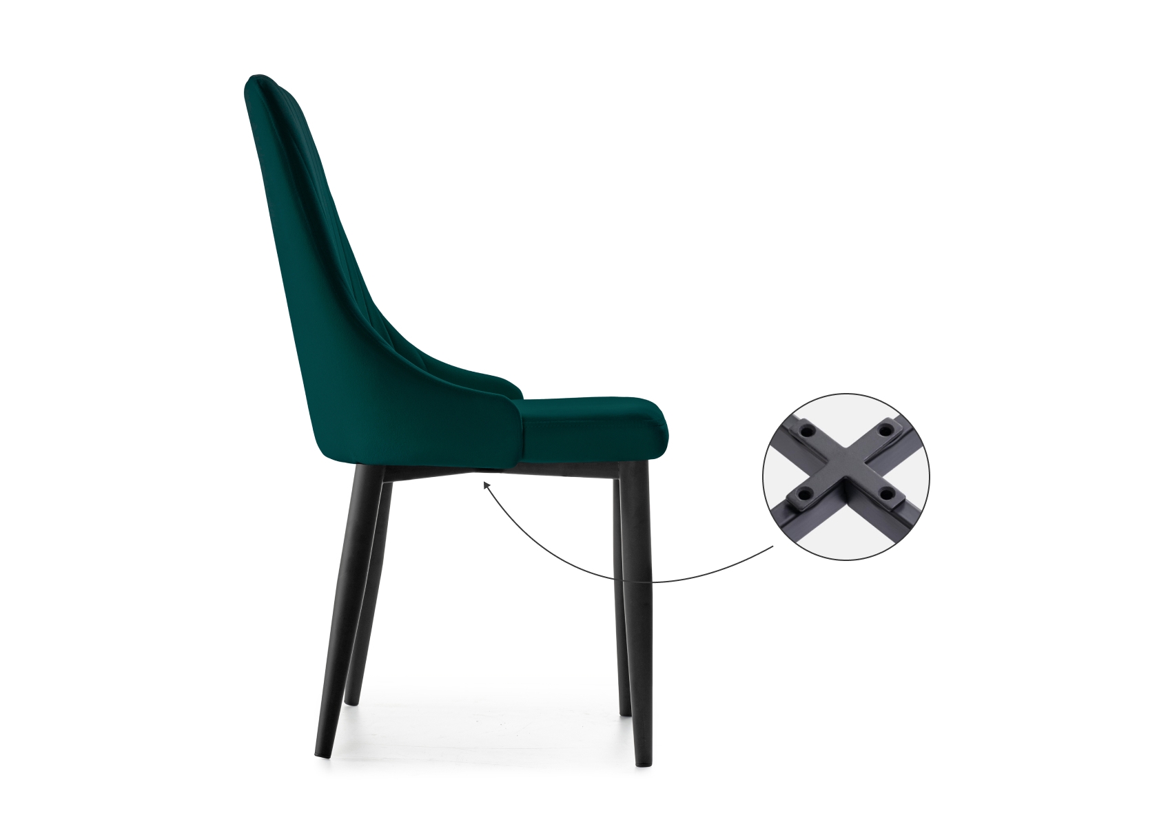 Стул Kora - отличный выбор для тех, кто ценит комфорт и элегантный дизайн. Обивка сиденья и спинки выполнена из мягкого велюра, что обеспечивает комфорт при длительном сидении. Ножки стула выполнены из окрашенного металла, что делает их прочными и долговечными. Этот стул идеально подходит для использования как в домашней обстановке, так и в коммерческих помещениях, таких как кафе, рестораны или офисы.