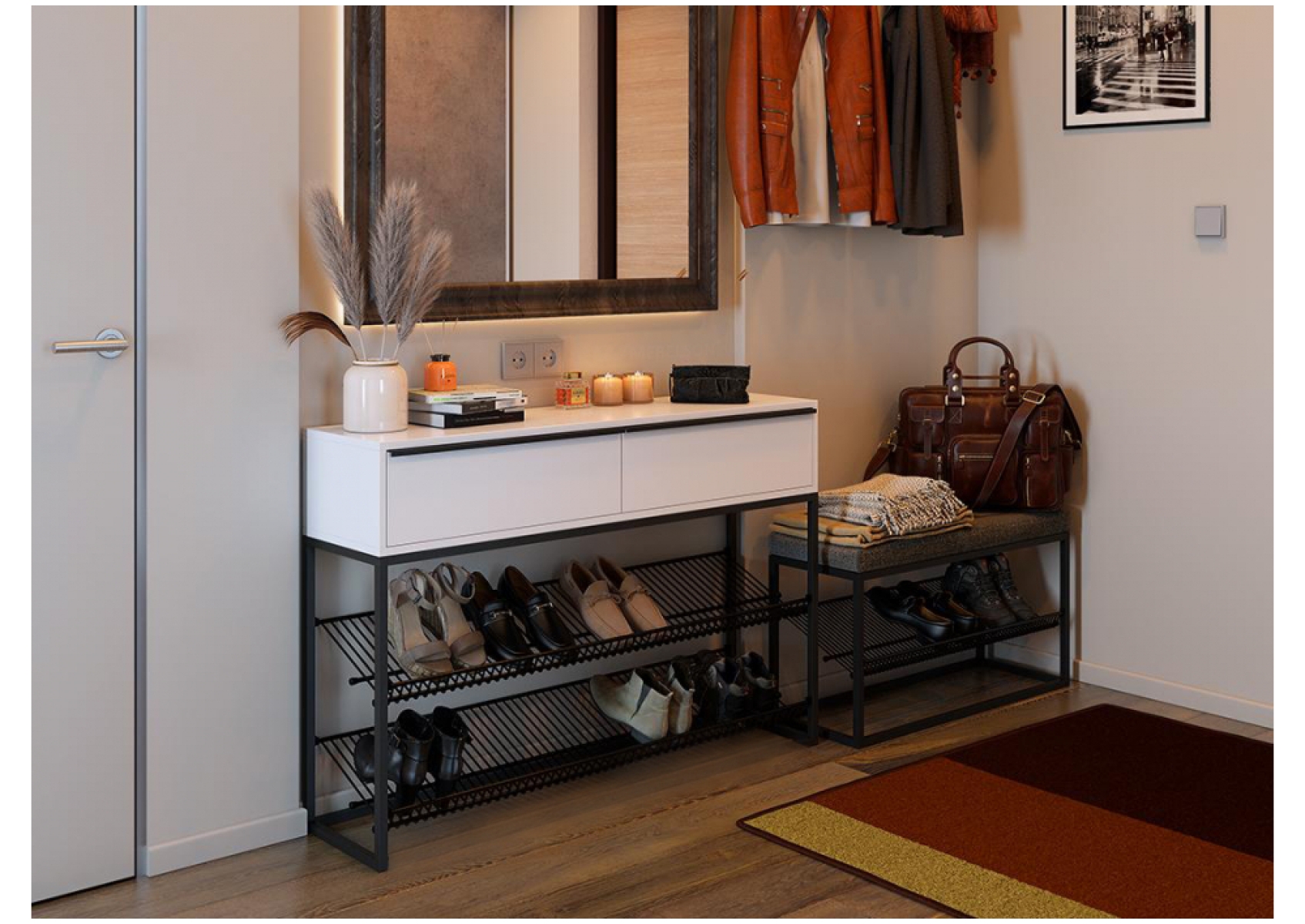 Обувница Крафт 2 черный муар / белый