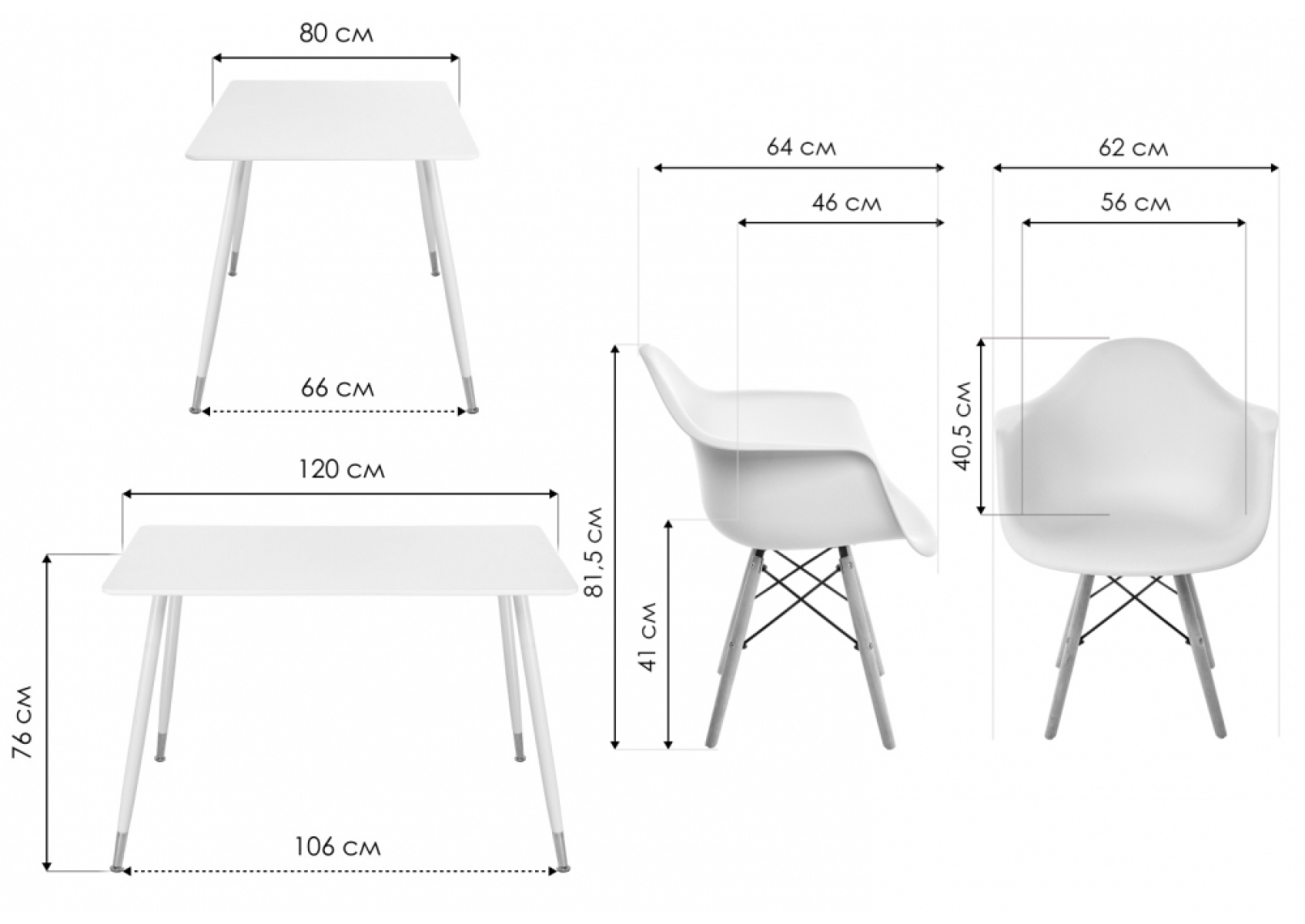 Обеденная группа Куиб white / wood