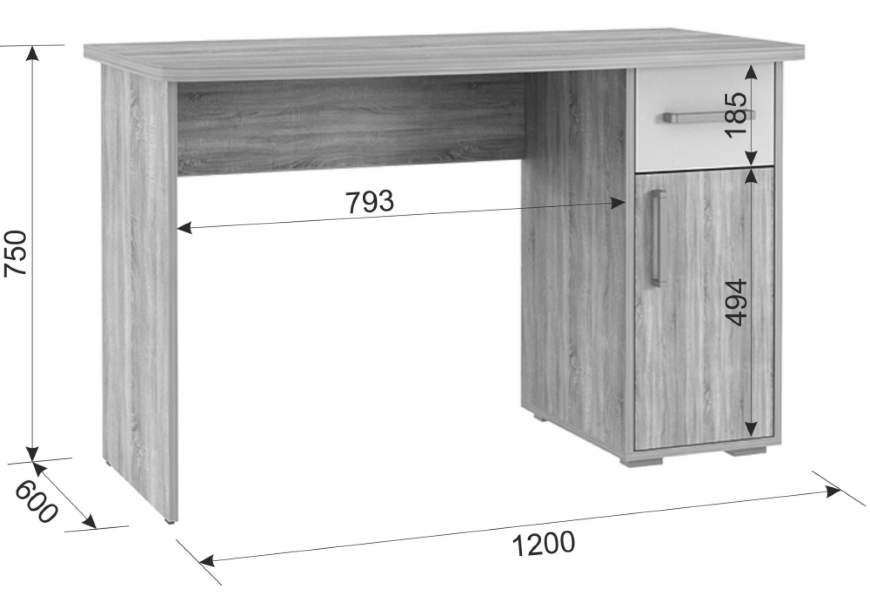 Компьютерный стол Лайт-1 120х60х75 см дуб сонома / белый