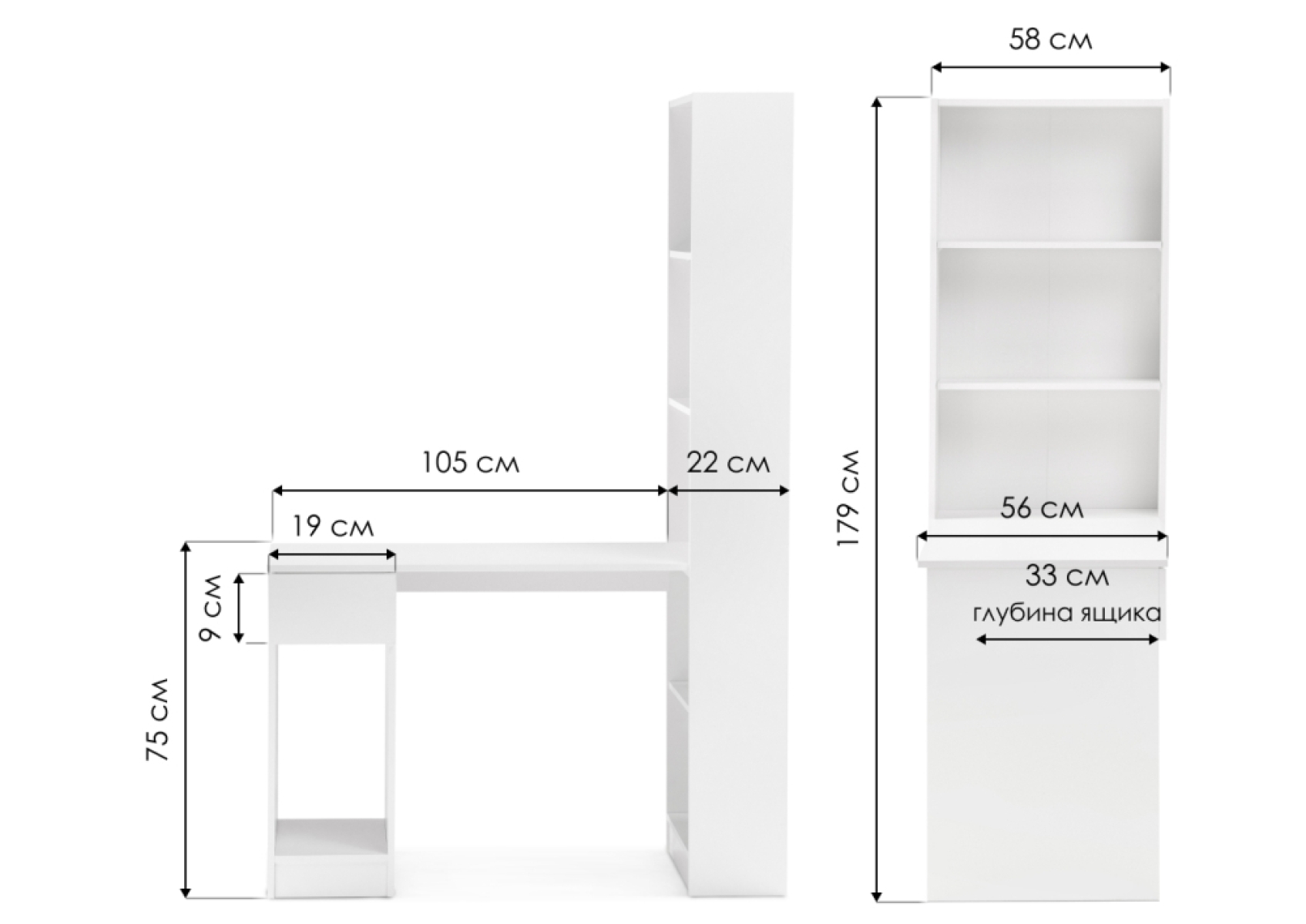 Письменный стол Лайт 10.01 115,3х58,2х179 белый гладкий 101