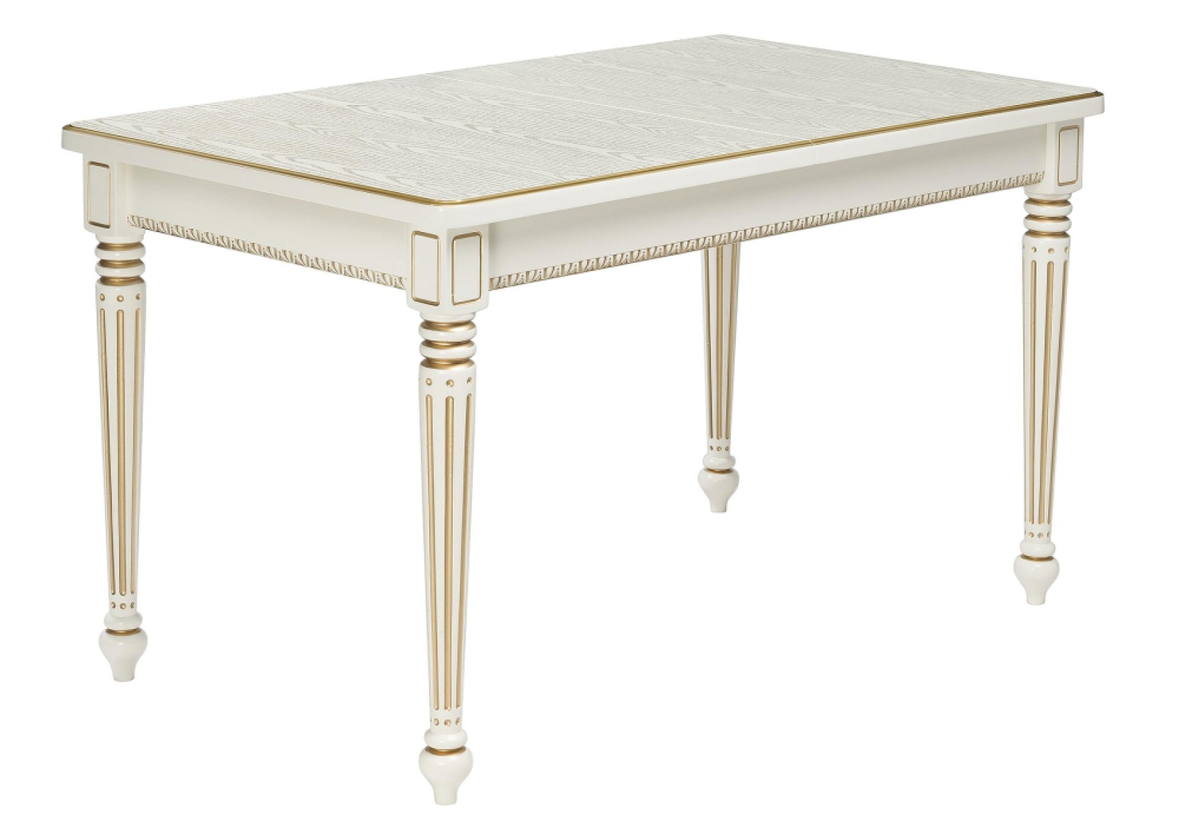 Деревянный стол Леджер 130(170)х75х77 слоновая кость / патина золото