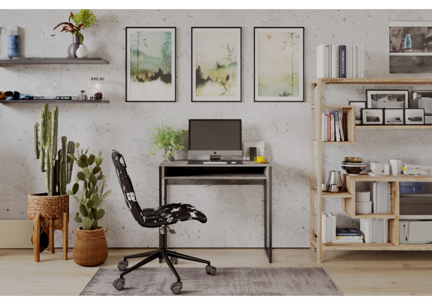Письменный стол Лео Лофт 85х39х75 бетон / матовый черный