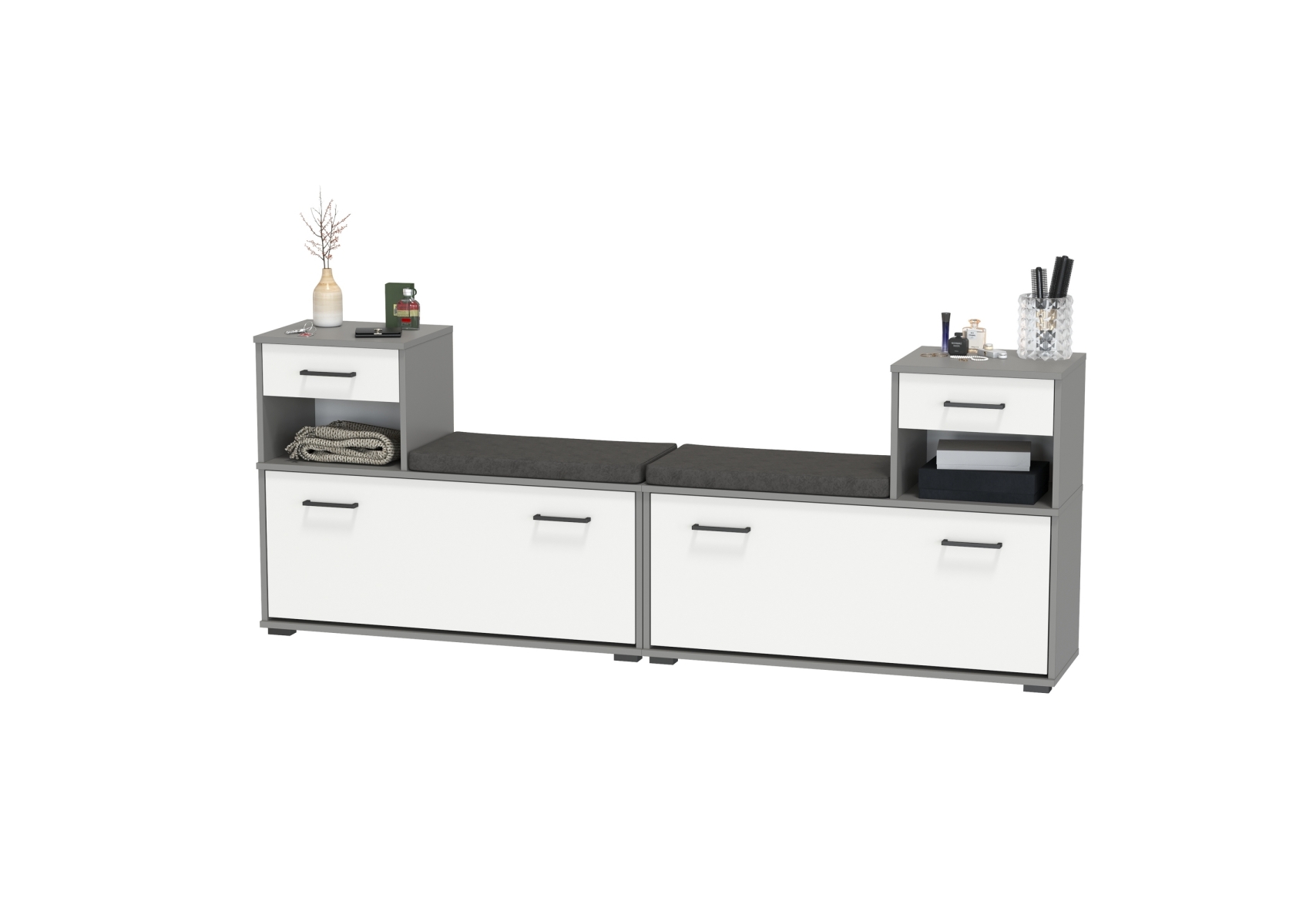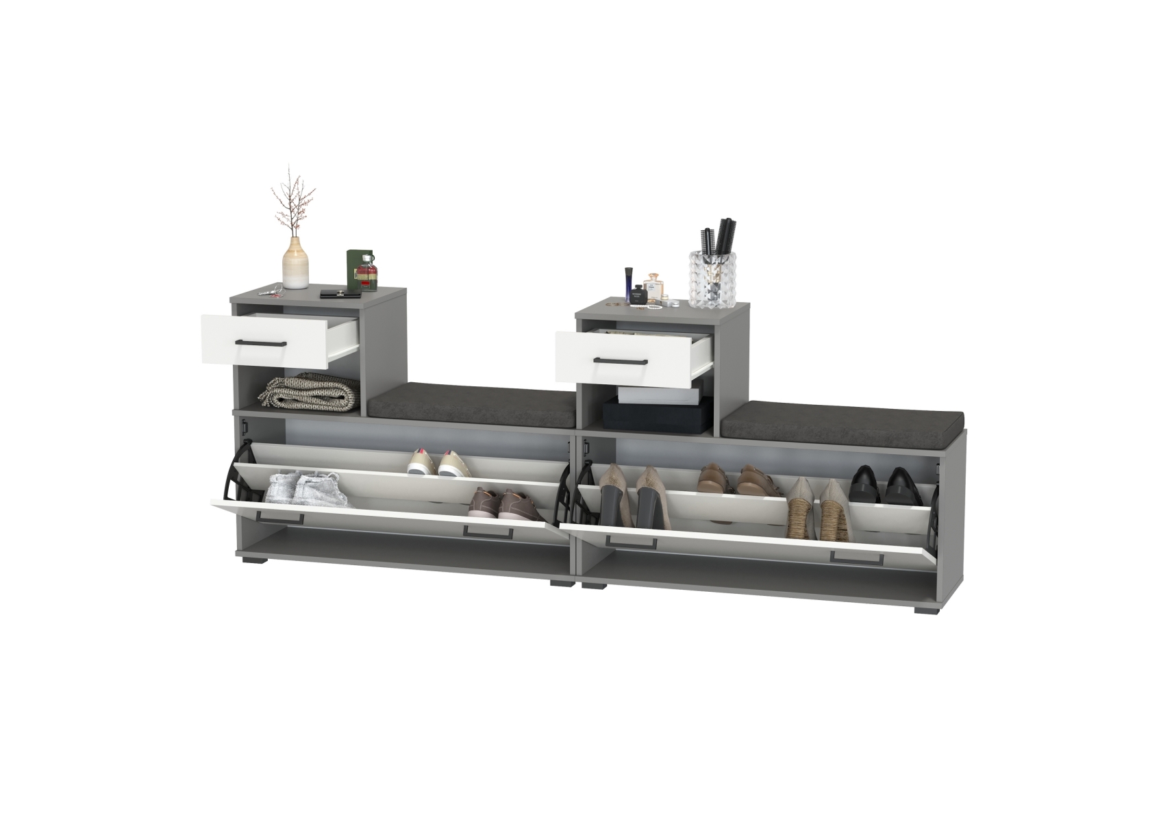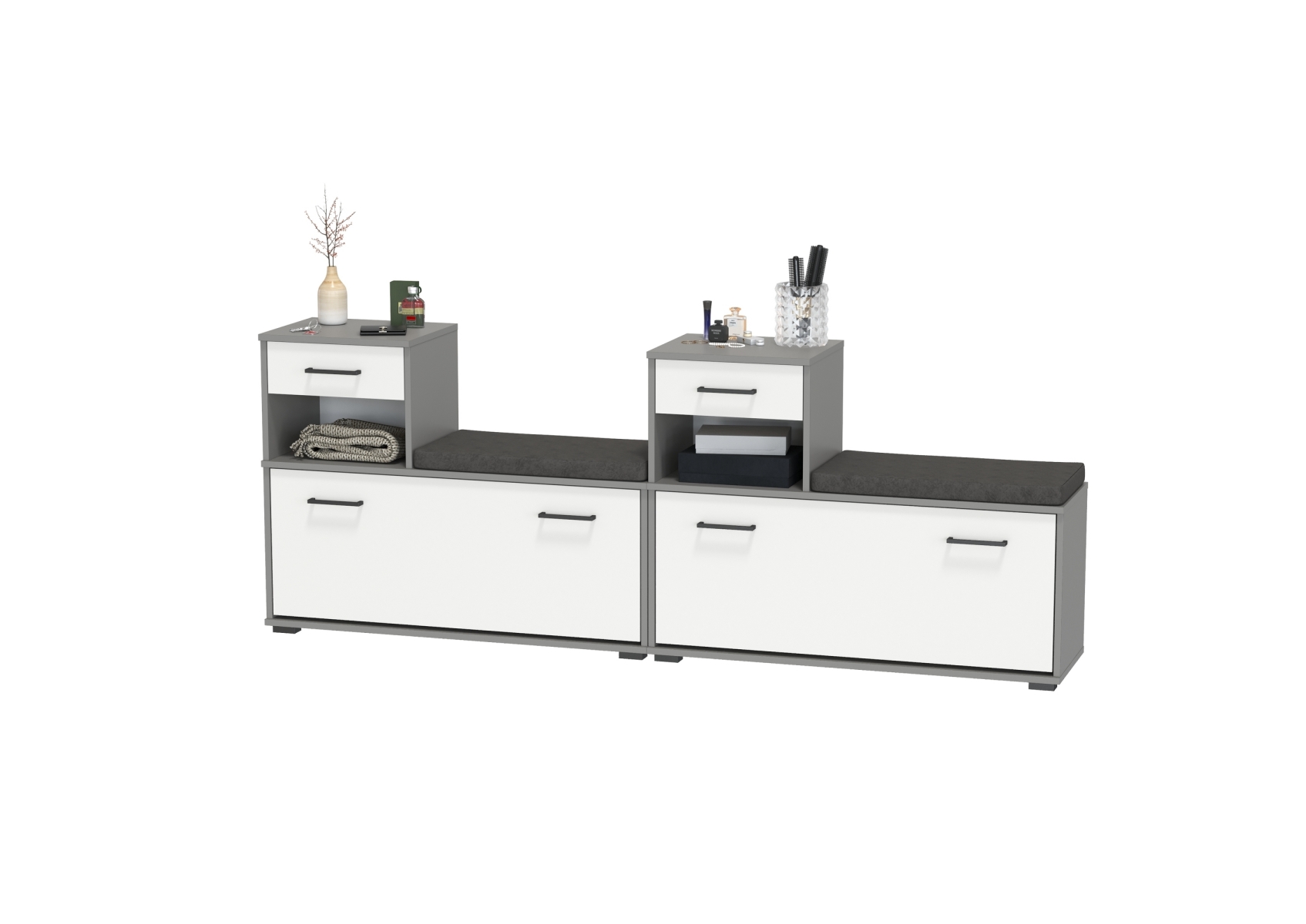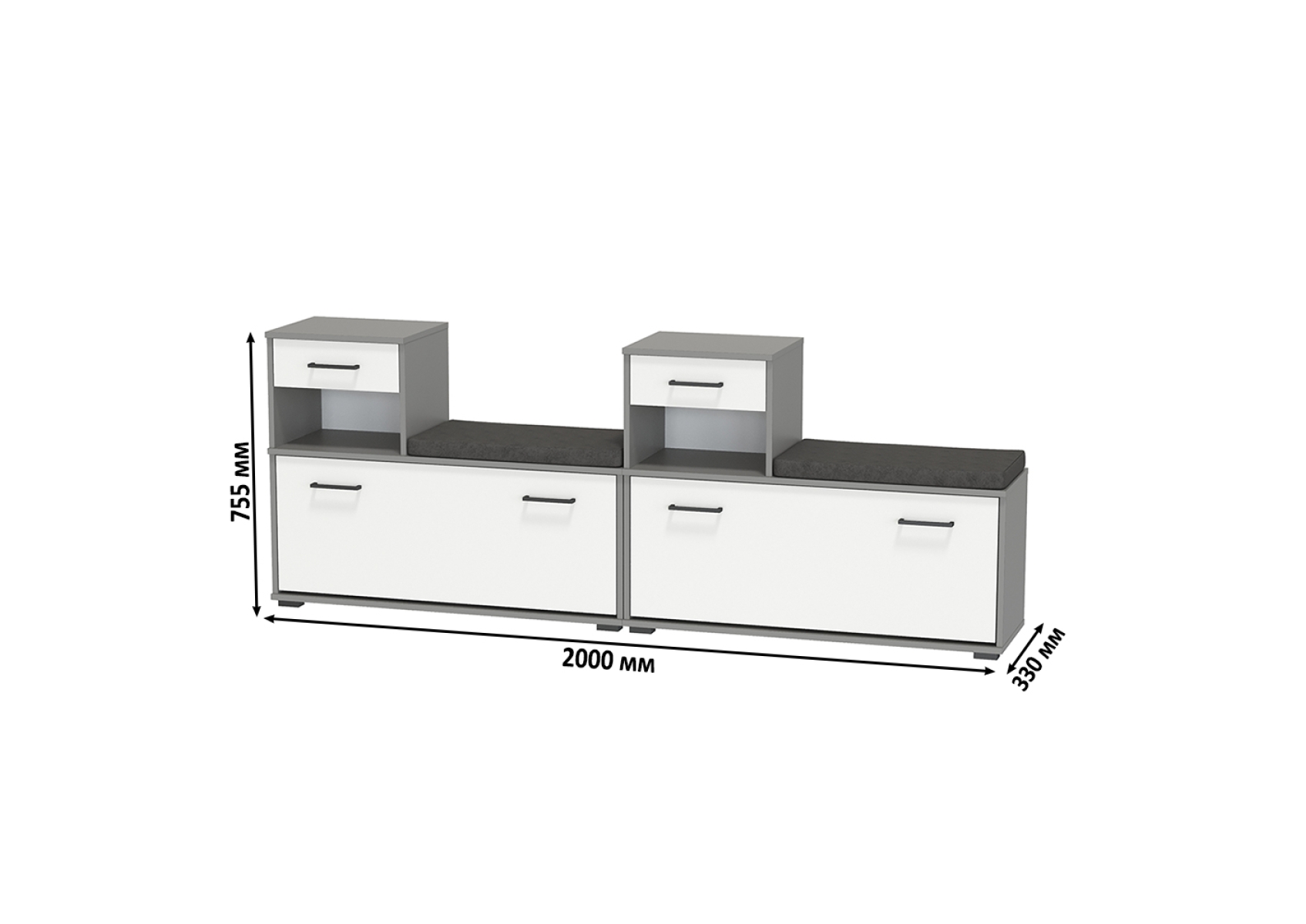 Лира ГК 2-0714+2-0714графбел Тумба под обувь, цвет графит/белый, ШхГхВ 200х33х75,5 см., универсальная сборка