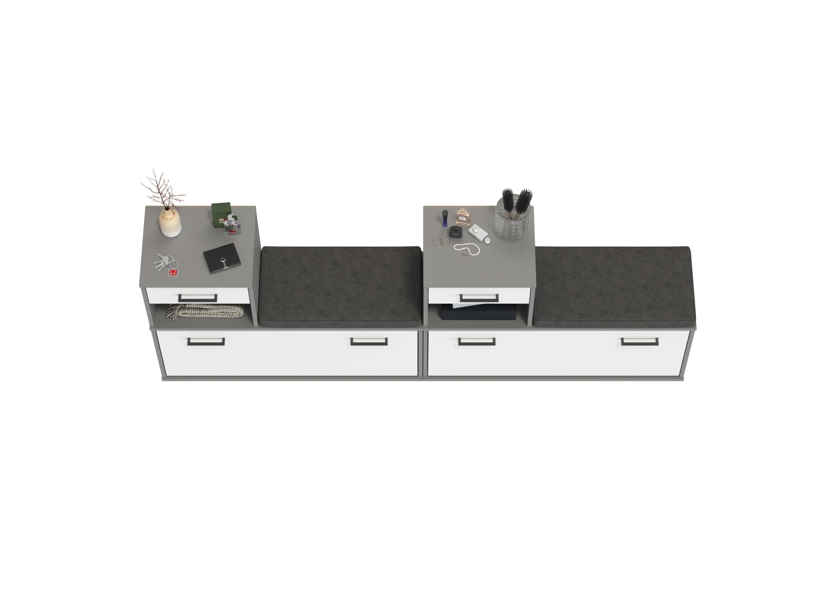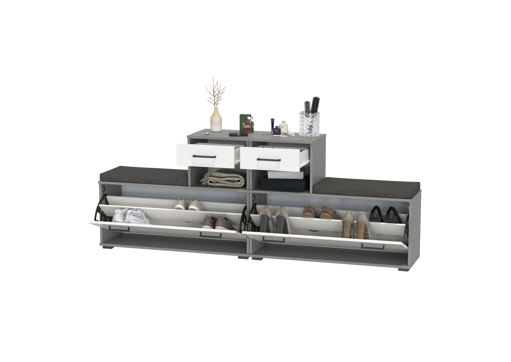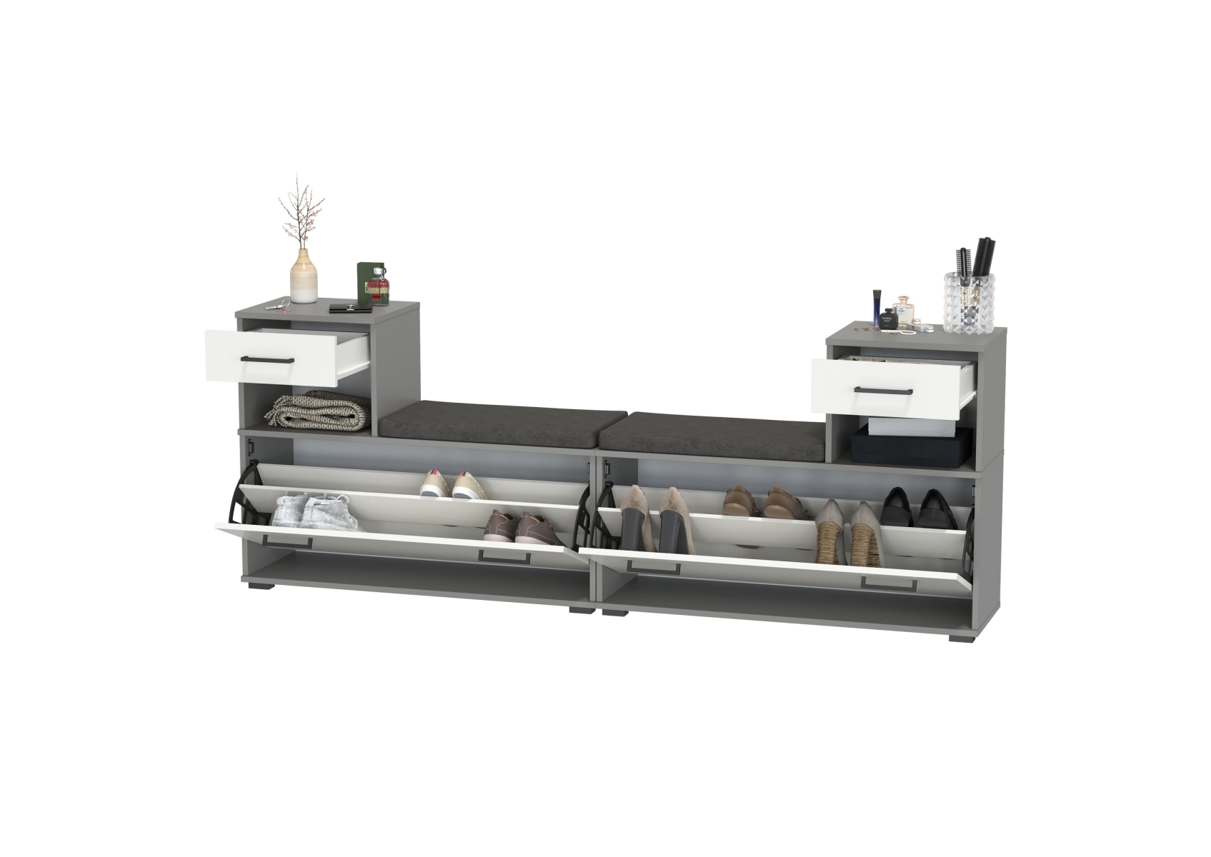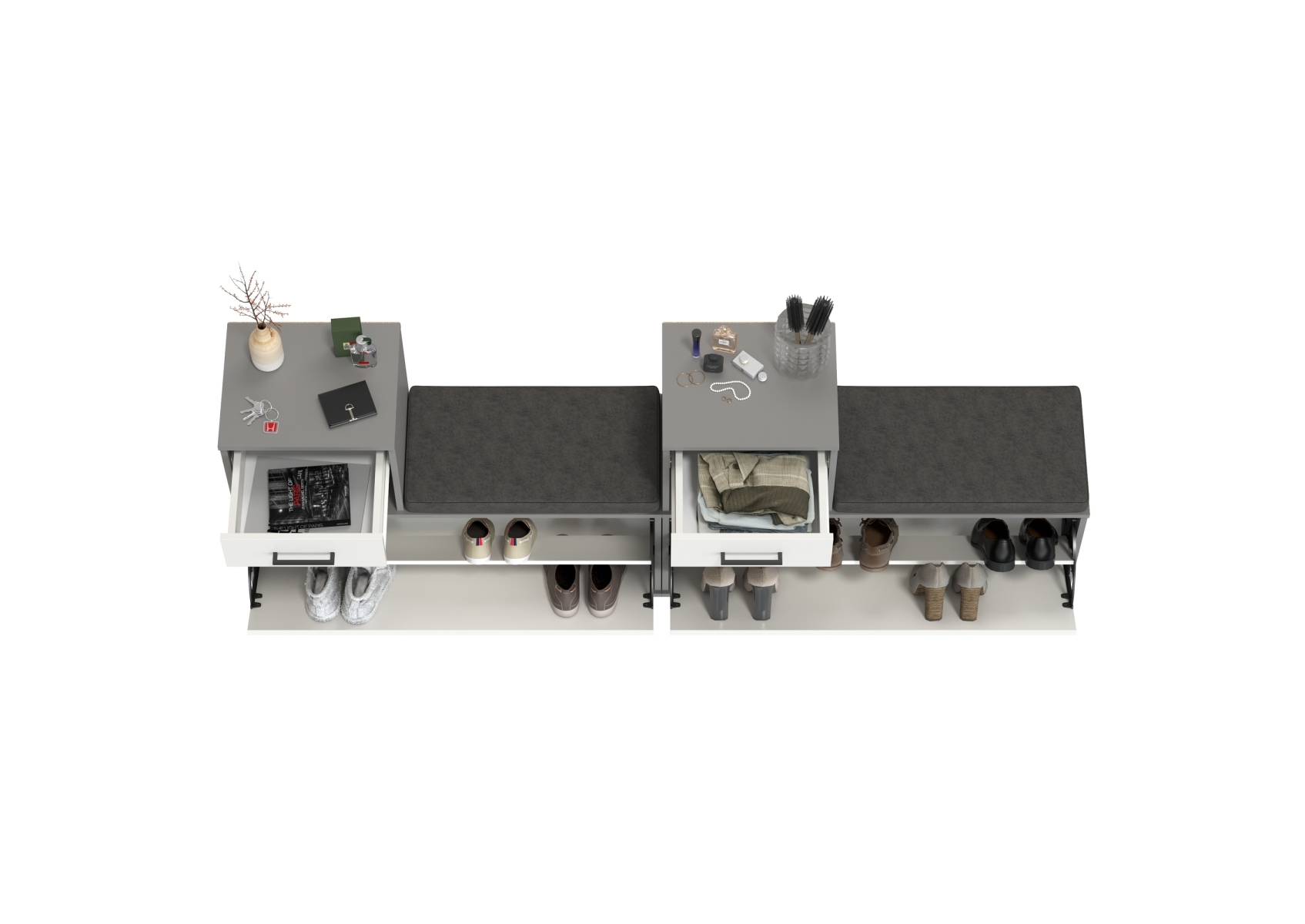 Лира ГК 2-0714+2-0714графбел Тумба под обувь, цвет графит/белый, ШхГхВ 200х33х75,5 см., универсальная сборка
