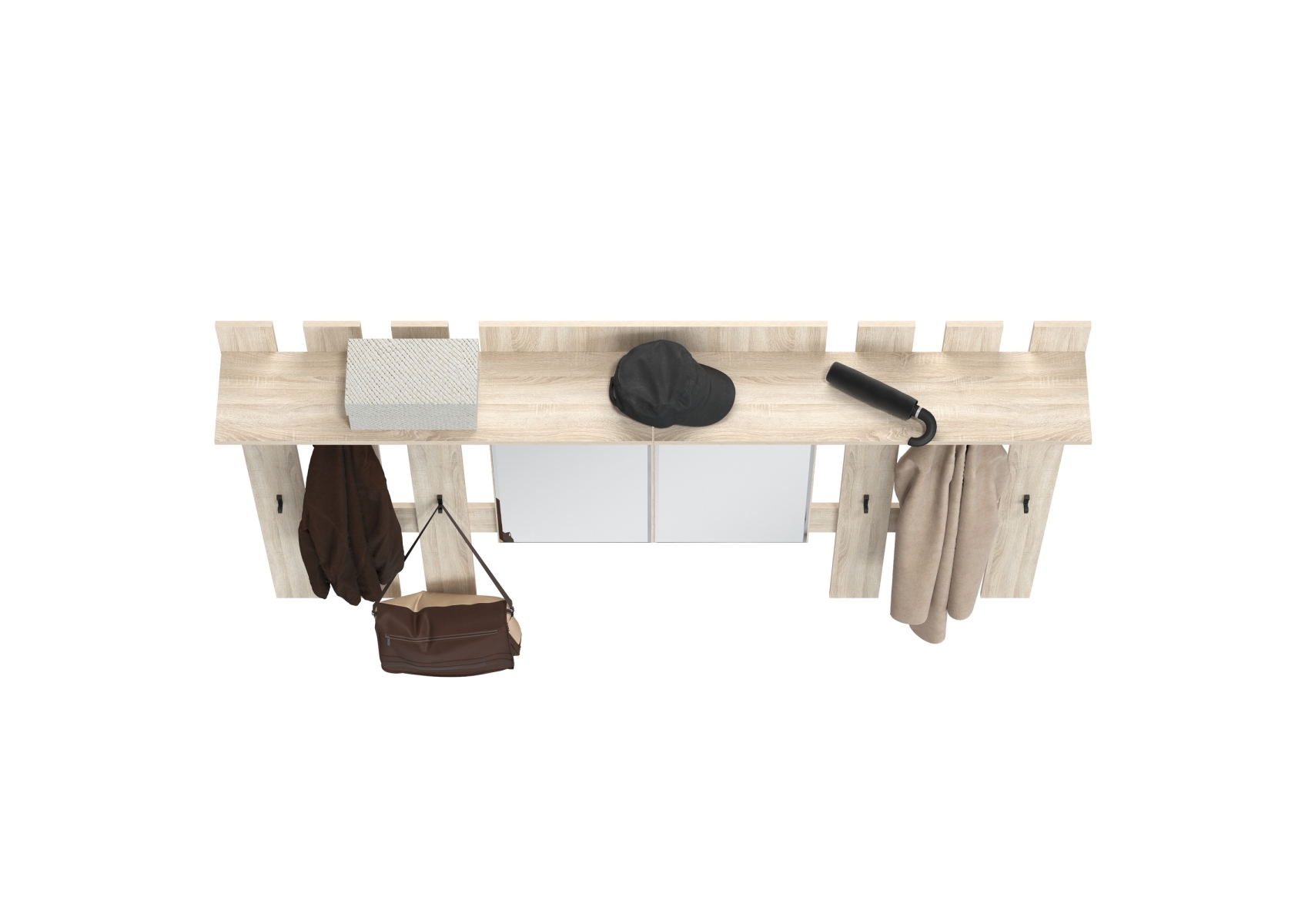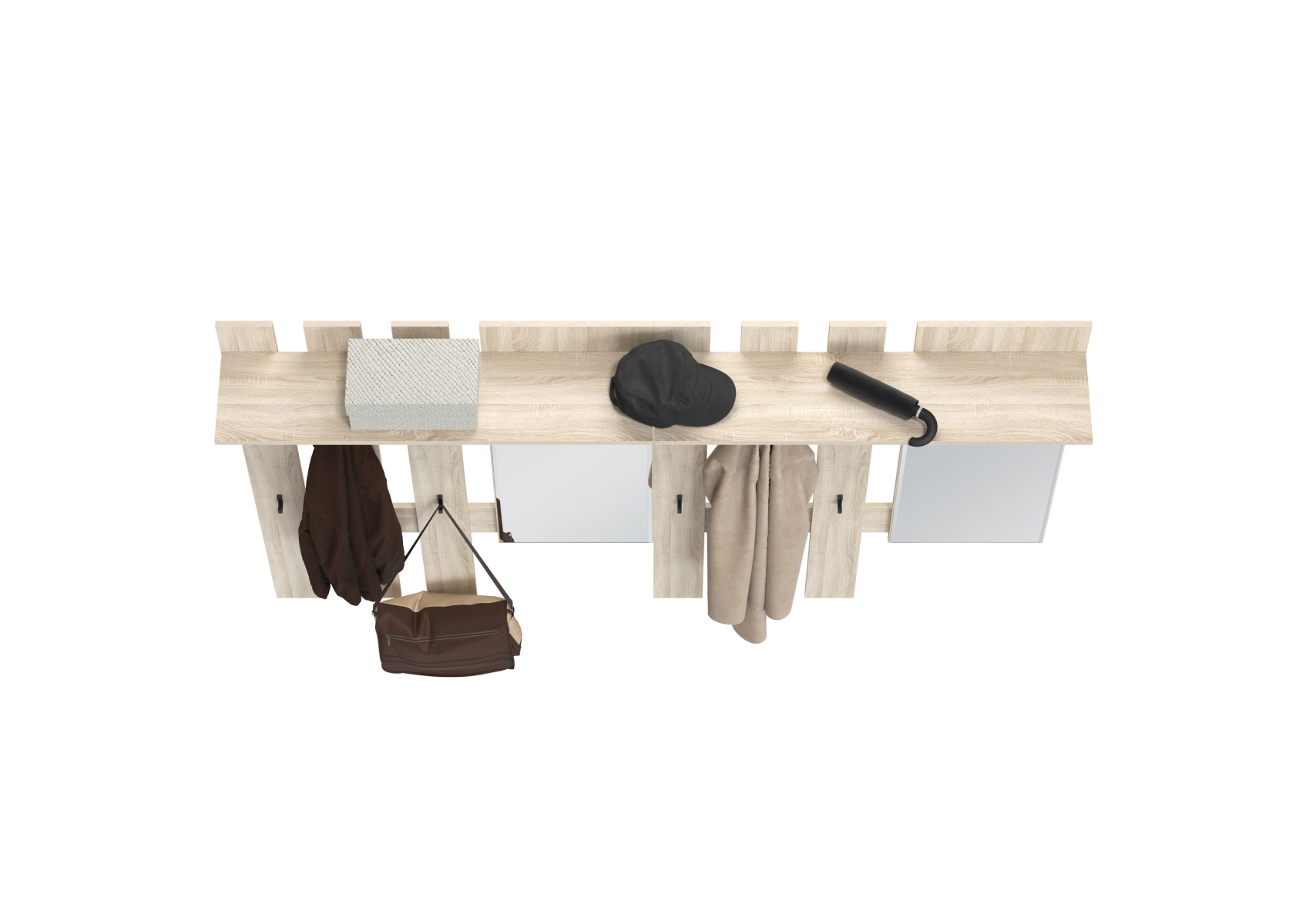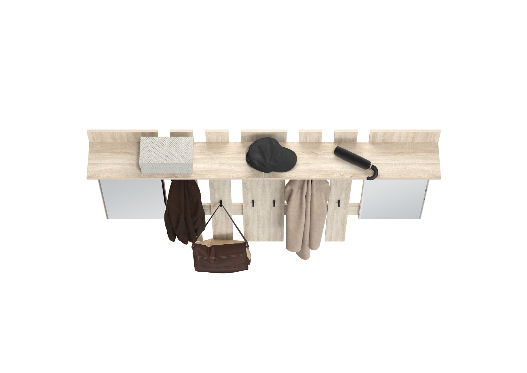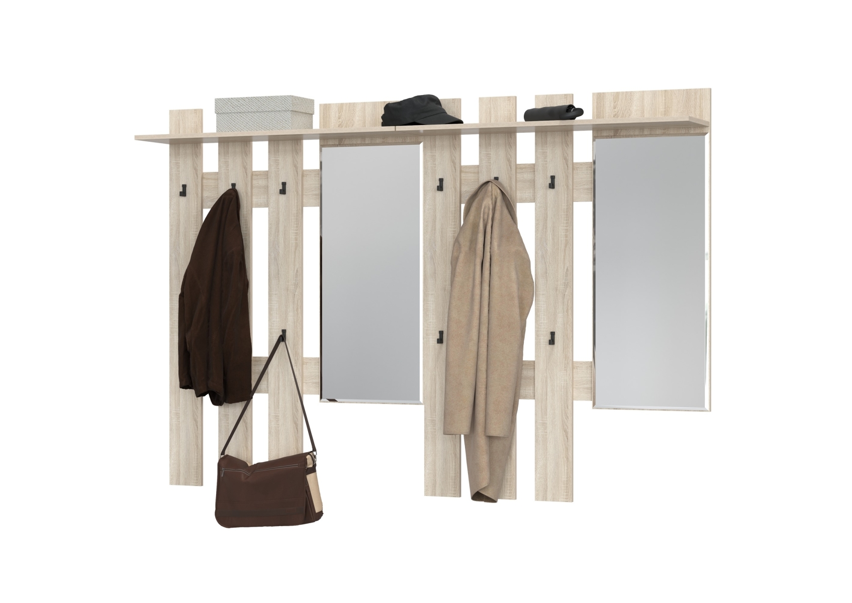 Лира ГК 2-3814+2-3814дубсон Вешалка с зеркалом, цвет дуб сонома, ШхГхВ 200х28х135 см., универсальная сборка