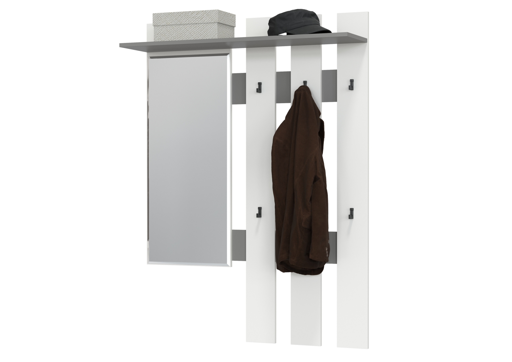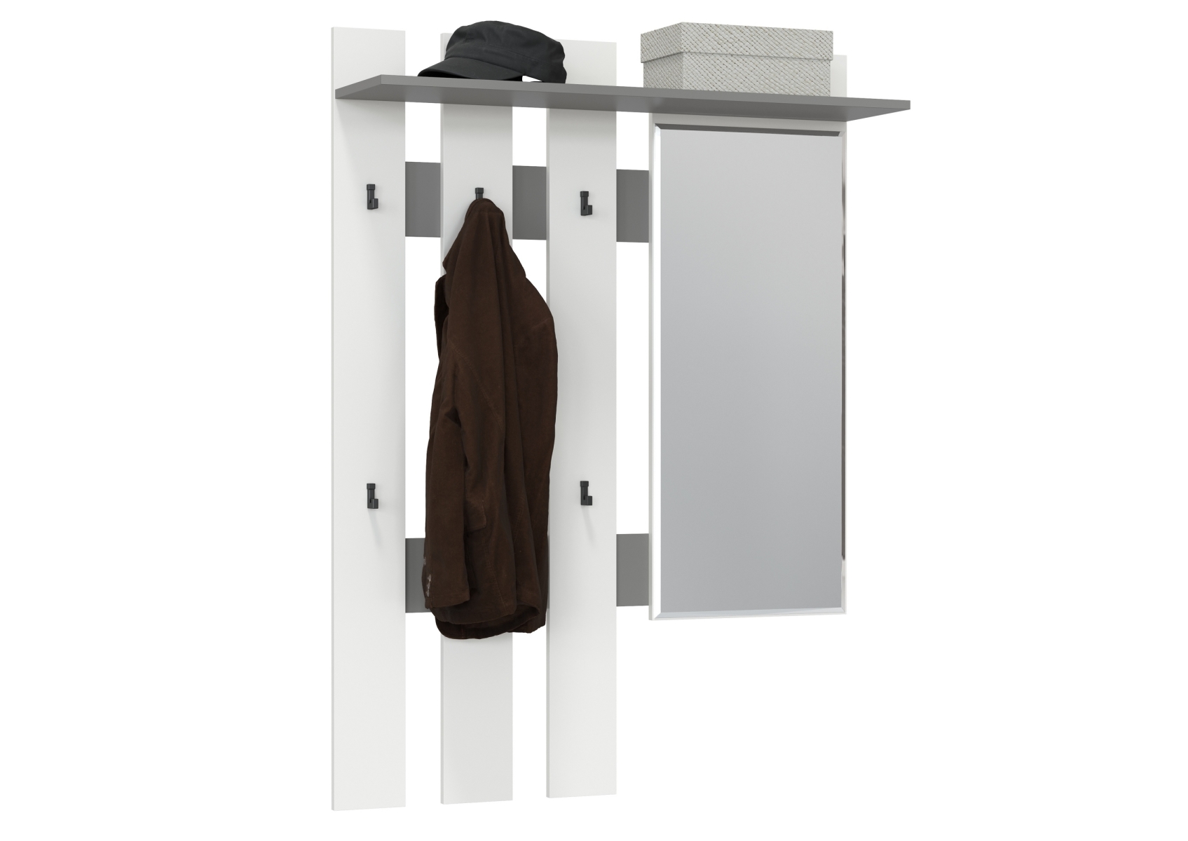 Лира ГК 2-3814граф/бел Вешалка с зеркалом, цвет графит/белый, ШхГхВ 100х28х135 см., универсальная сборка
